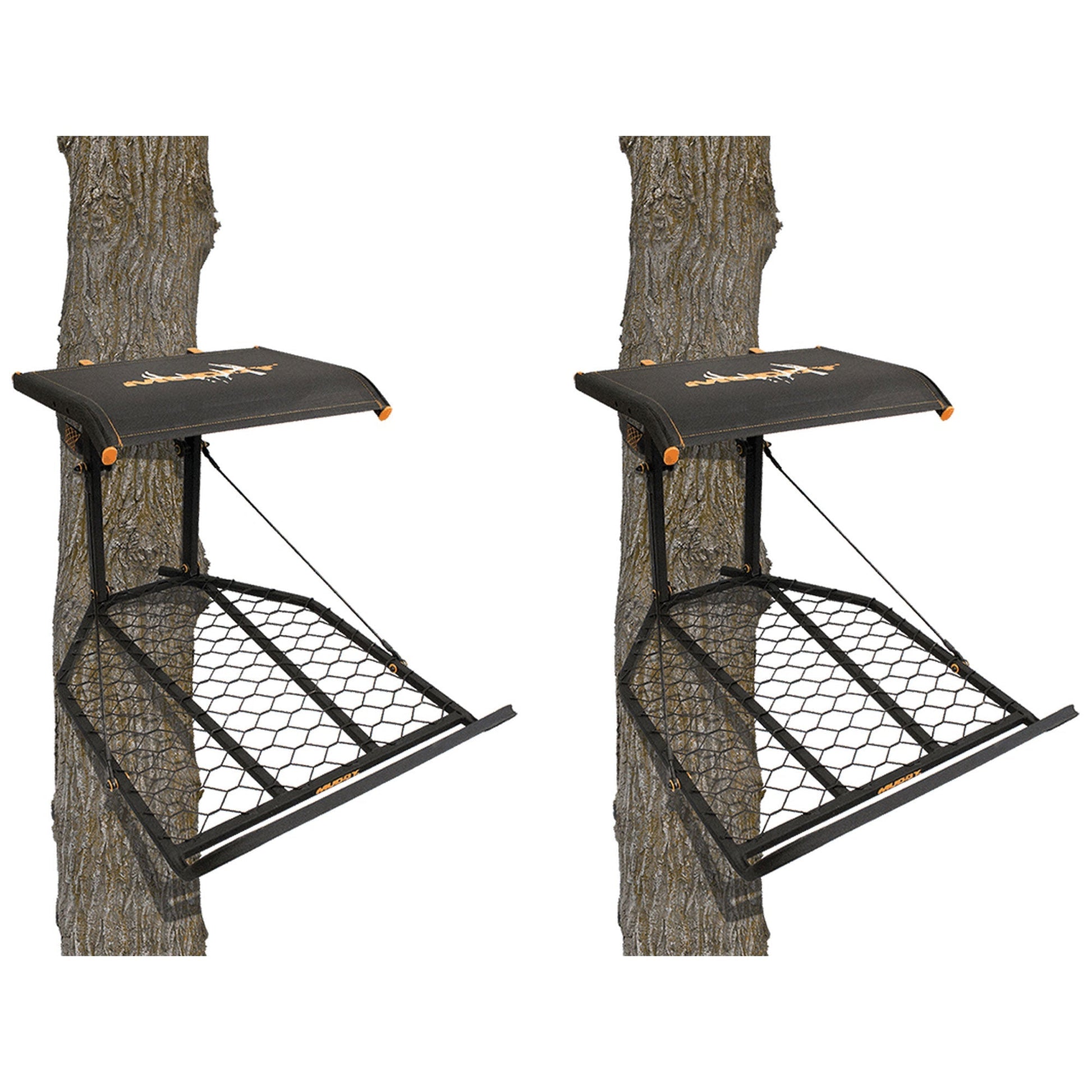 Dominate your next hunting excursion with the 2-pack of Muddy The Boss XL Wide Stance Hang On 1-Person Deer Hunting Tree Stand.