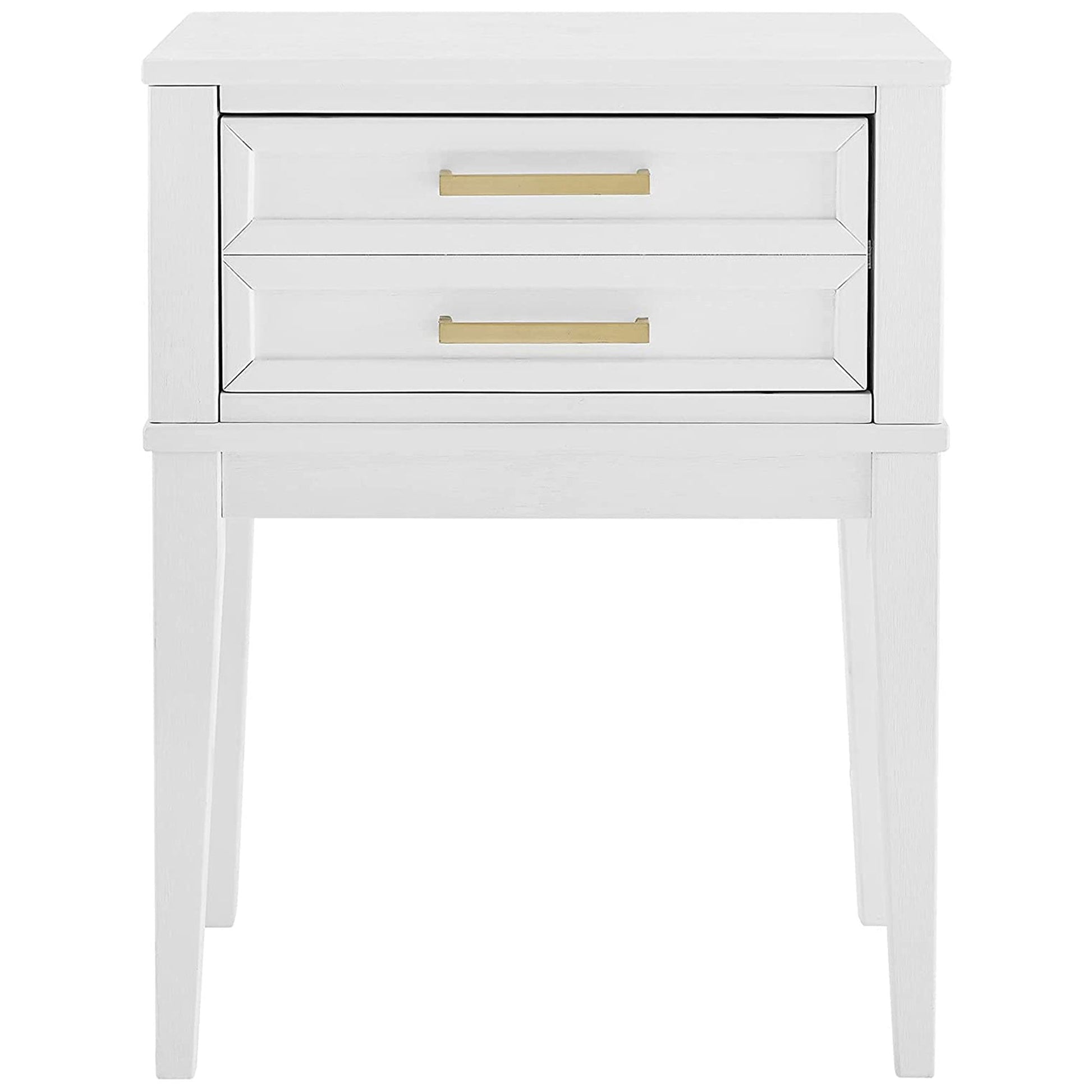 Versatility is key with furniture and this piece does not miss the mark. You can use this unit as a bedside nightstand, living room end table, entryway storage, and various other places in your home. The exciting white finish and bright gold drawer handles add a unique modern twist that is sure to look amazing in any home.