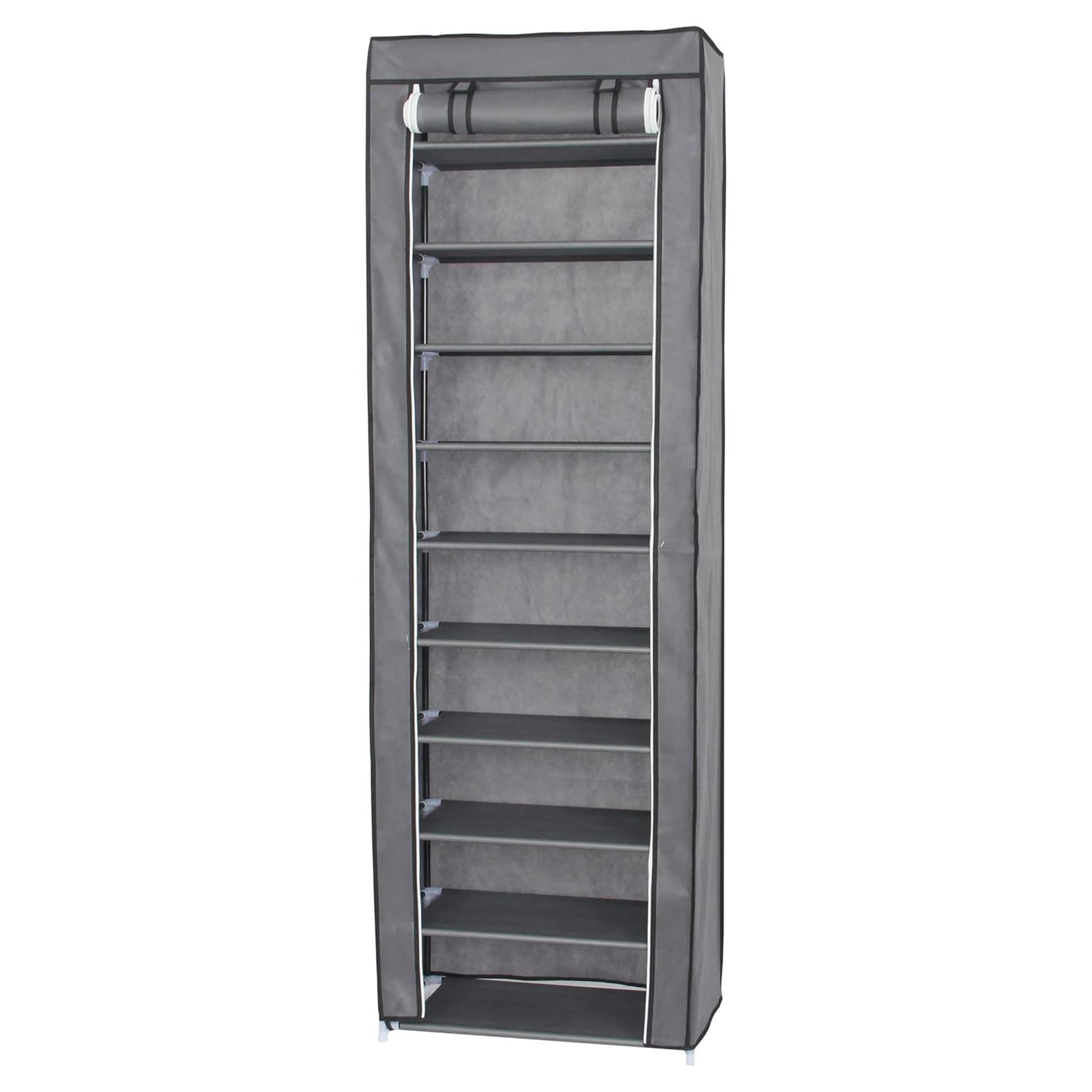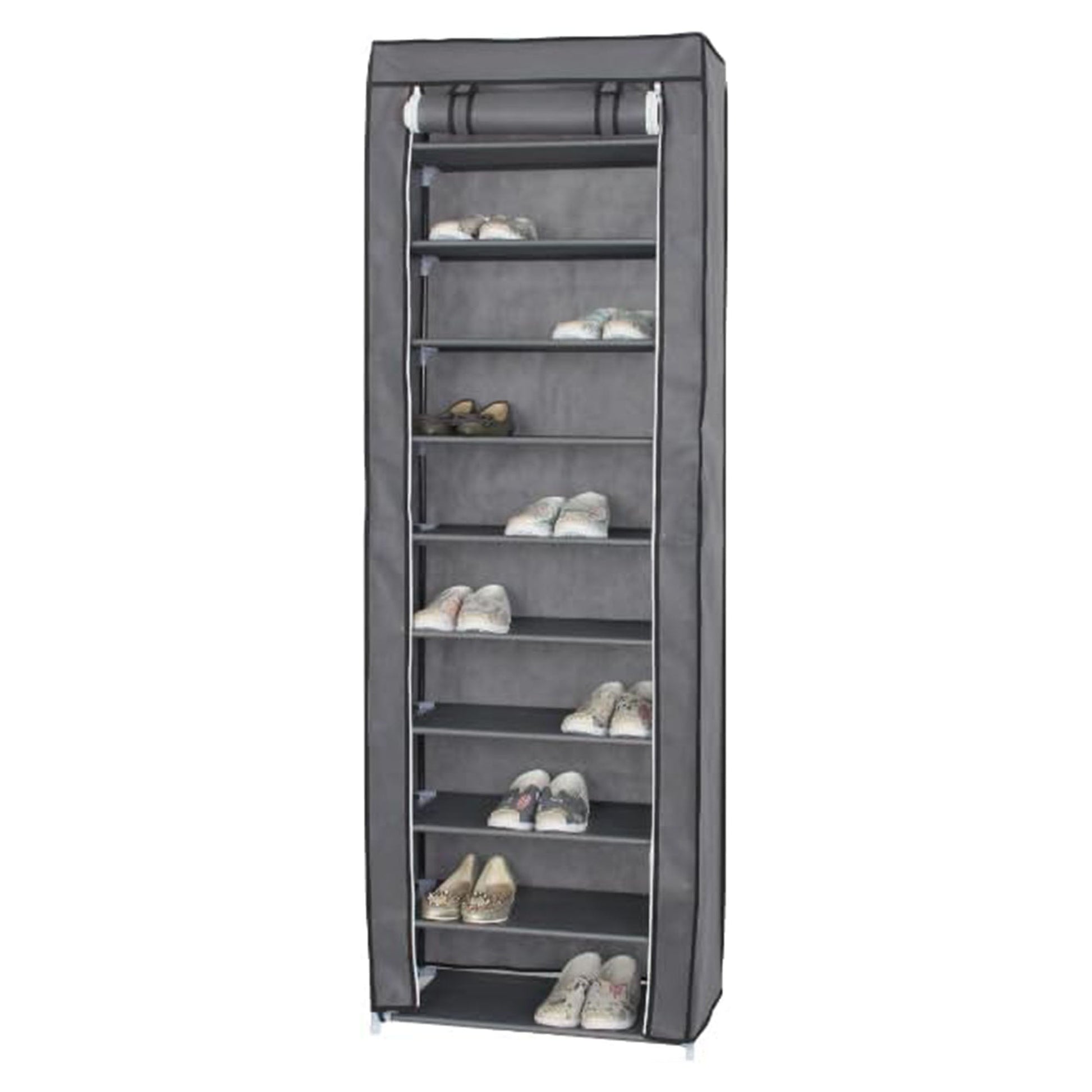 Neat Living Vertical 10 Tier Shoe Organizer Rack, Storage Shelves & Cover, Gray