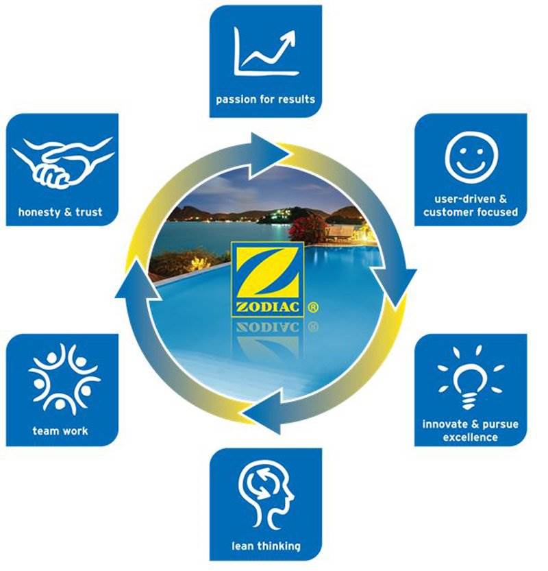 Zodiac is a leading global manufacturer of differentiated pool and spa products. Applying our rich heritage of innovation excellence to product engineering, we develop some of the world's leading solutions for the most technologically advanced, energy efficient, and clean swimming pools and spas. Through our best in class products, Zodiac is the provider of choice for millions of people worldwide.