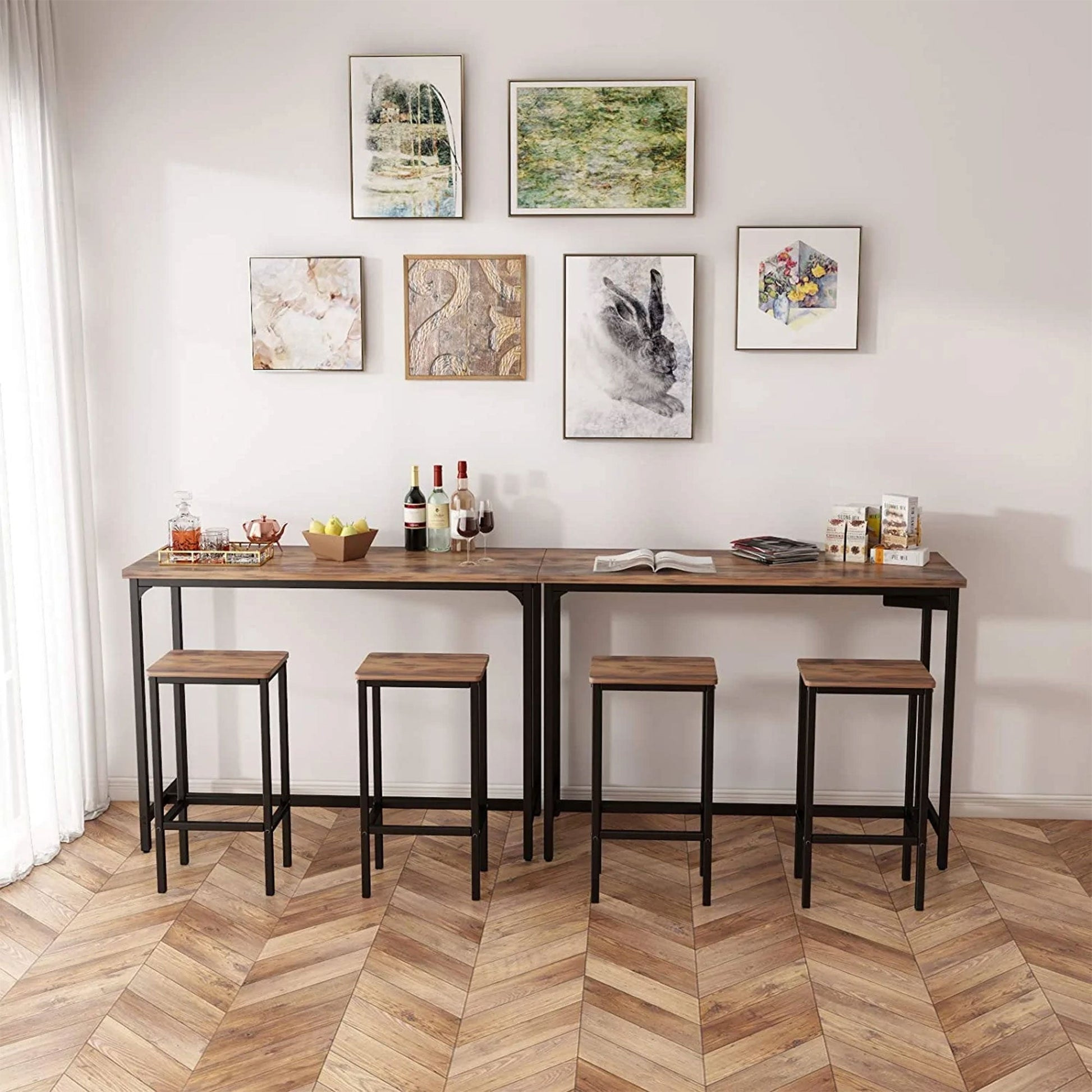 This is the perfect stool for all occasions, whether pairing with a table that you already have, adding seating to your countertop, or casual entertaining space. Constructed with a solid wood frame and industrial metal legs, these stools will go with a wide variety of styles. The top of the seat is made with non-slip, water, and scratch-resistant material. Some light assembly is required, but no worries as these barstools feature simple and fast installation, making sure you are experiencing your new stool within minutes of being out of the box. Overall dimensions for this bar stool are 15.7 inches long, 11.8 inches wide, and 25.6 inches tall. Add this rustic duo set and add some charm to your industrial modern aesthetic.