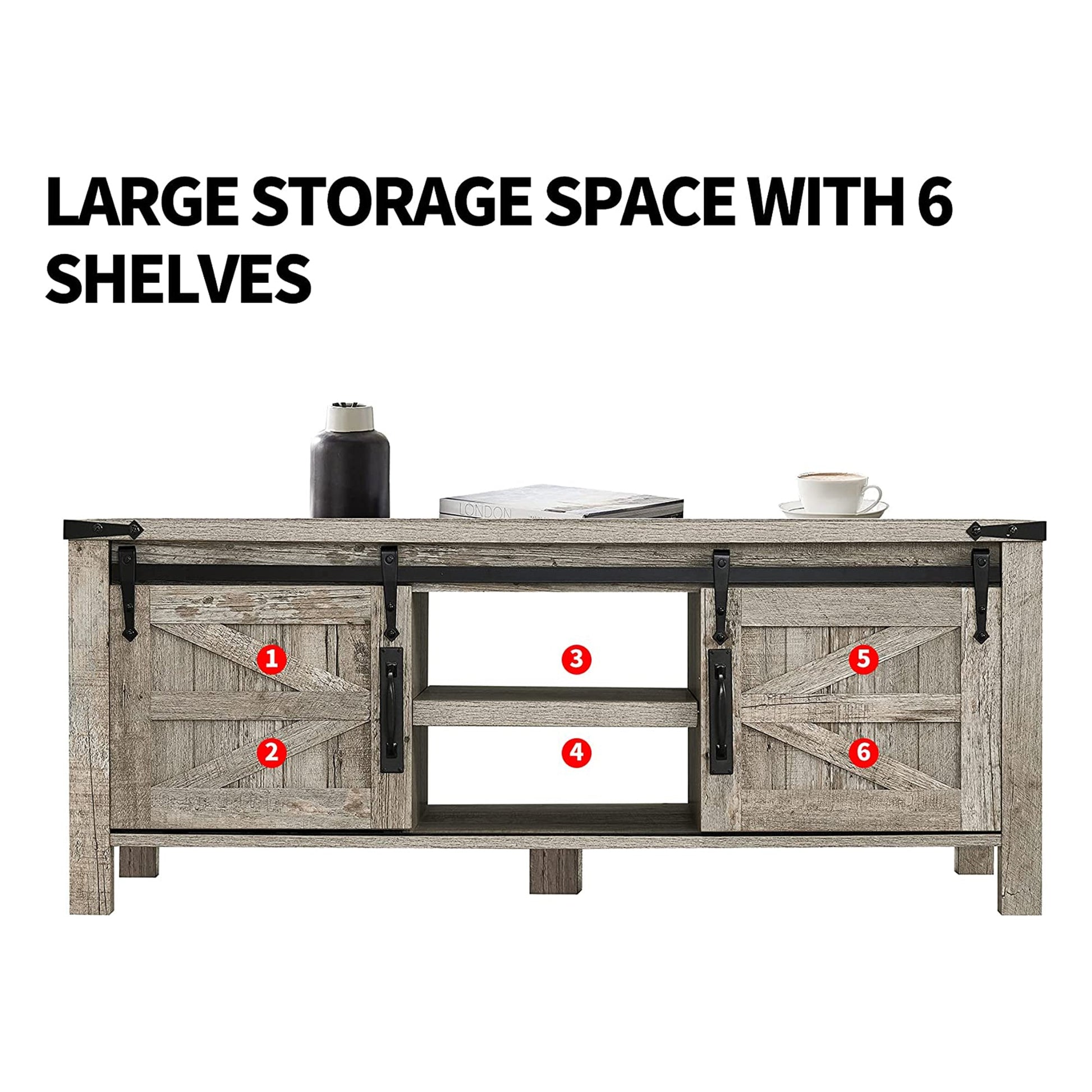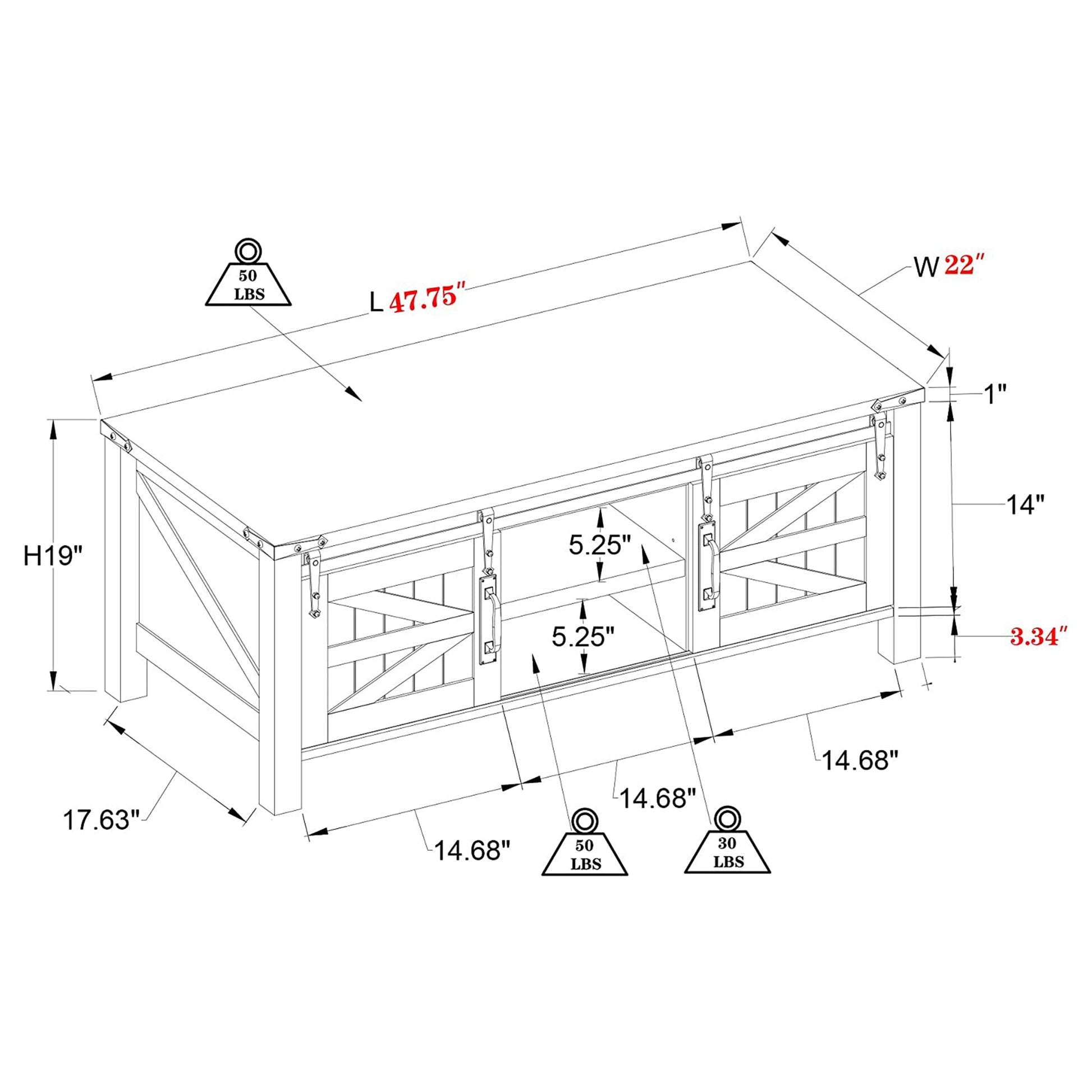 The sliding doors conceal 2 deep-set shelves where you can organize your linens, blankets, board games, movies, or everyday items and keep them easily out of sight when not in use. The table includes middle leg support that prevents it from sagging, even when storing heavier items.