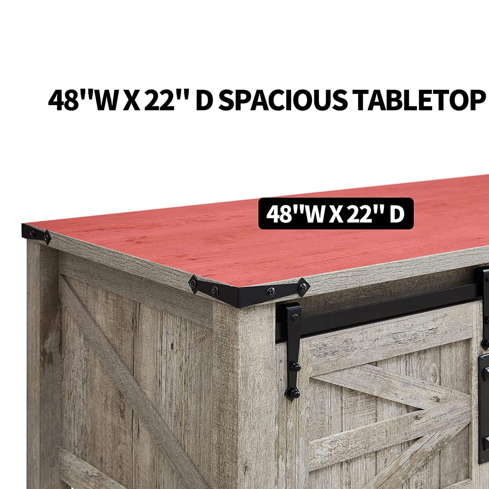 OKD Farmhouse 48 Inch Coffee Table with Sliding Barn Doors, Light Rustic Oak