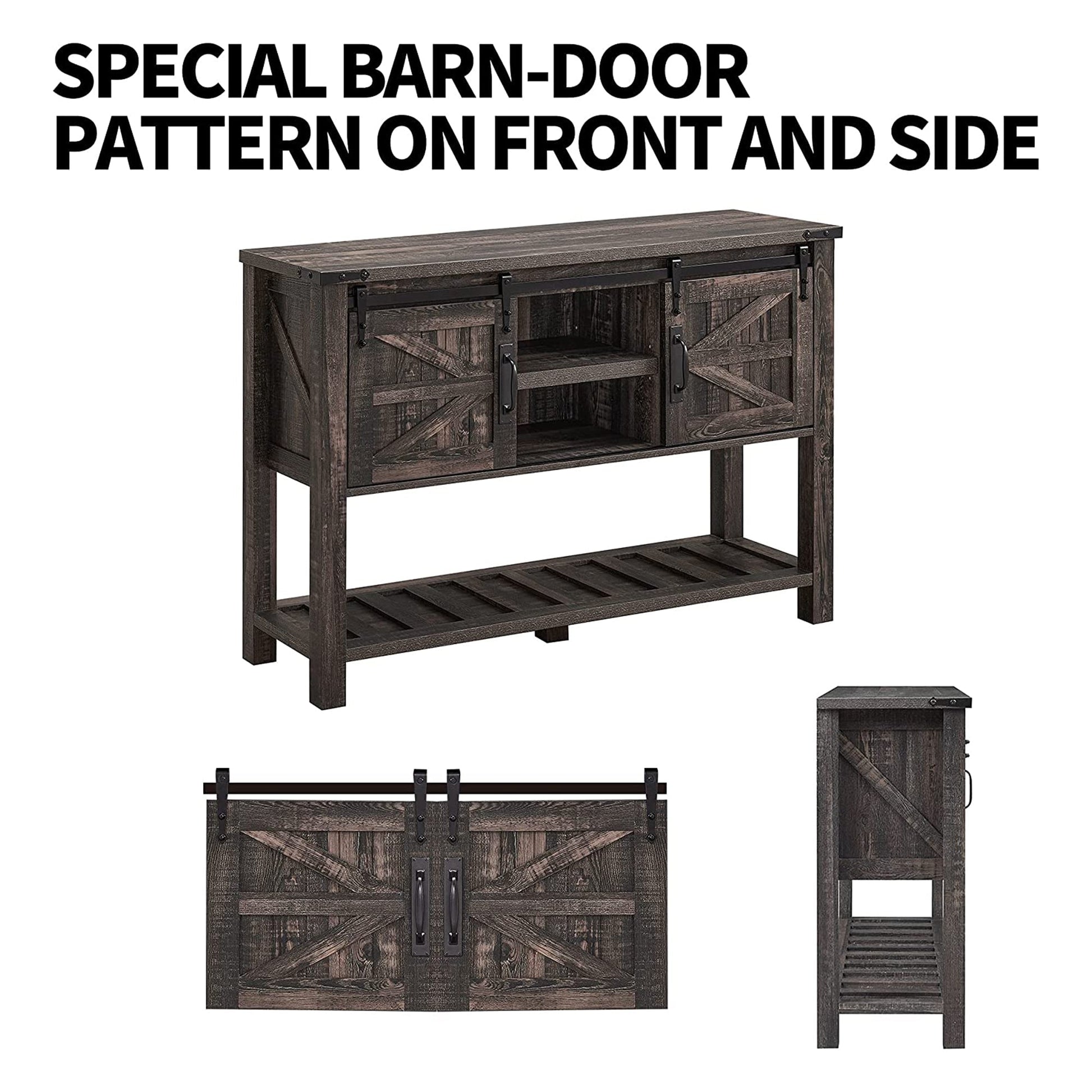 OKD Farmhouse Console Entryway Table with Sliding Barn Doors, Dark Rustic Oak
