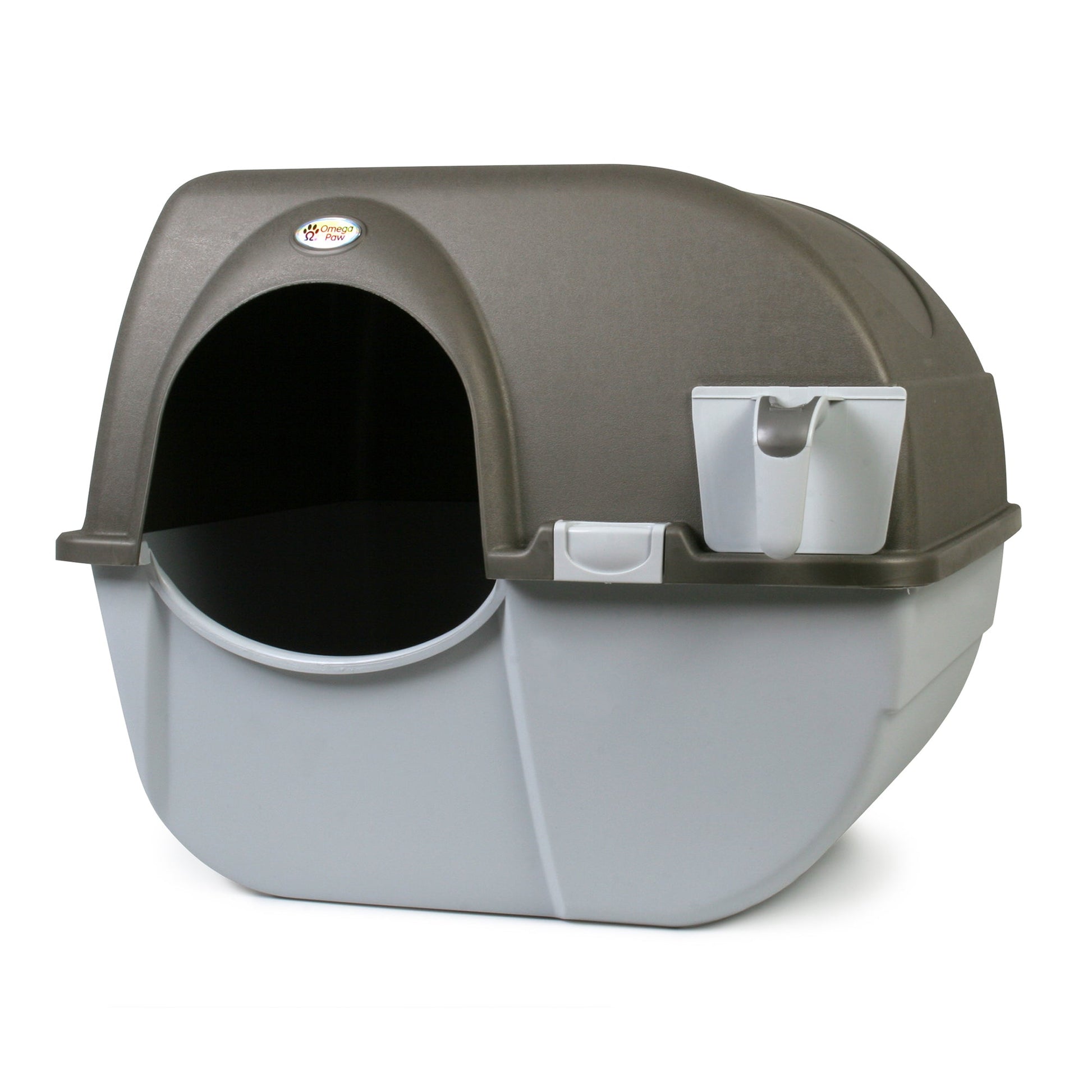 Omega Paw Roll 'n Clean Self Cleaning Cat Litter Box with Tray, Regular, Taupe