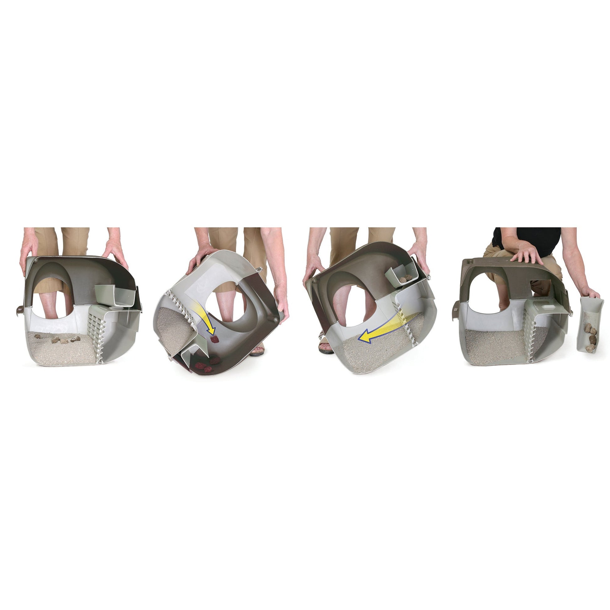 - Patented sifting grate separates clumps from clean litter, just roll and return to upright position