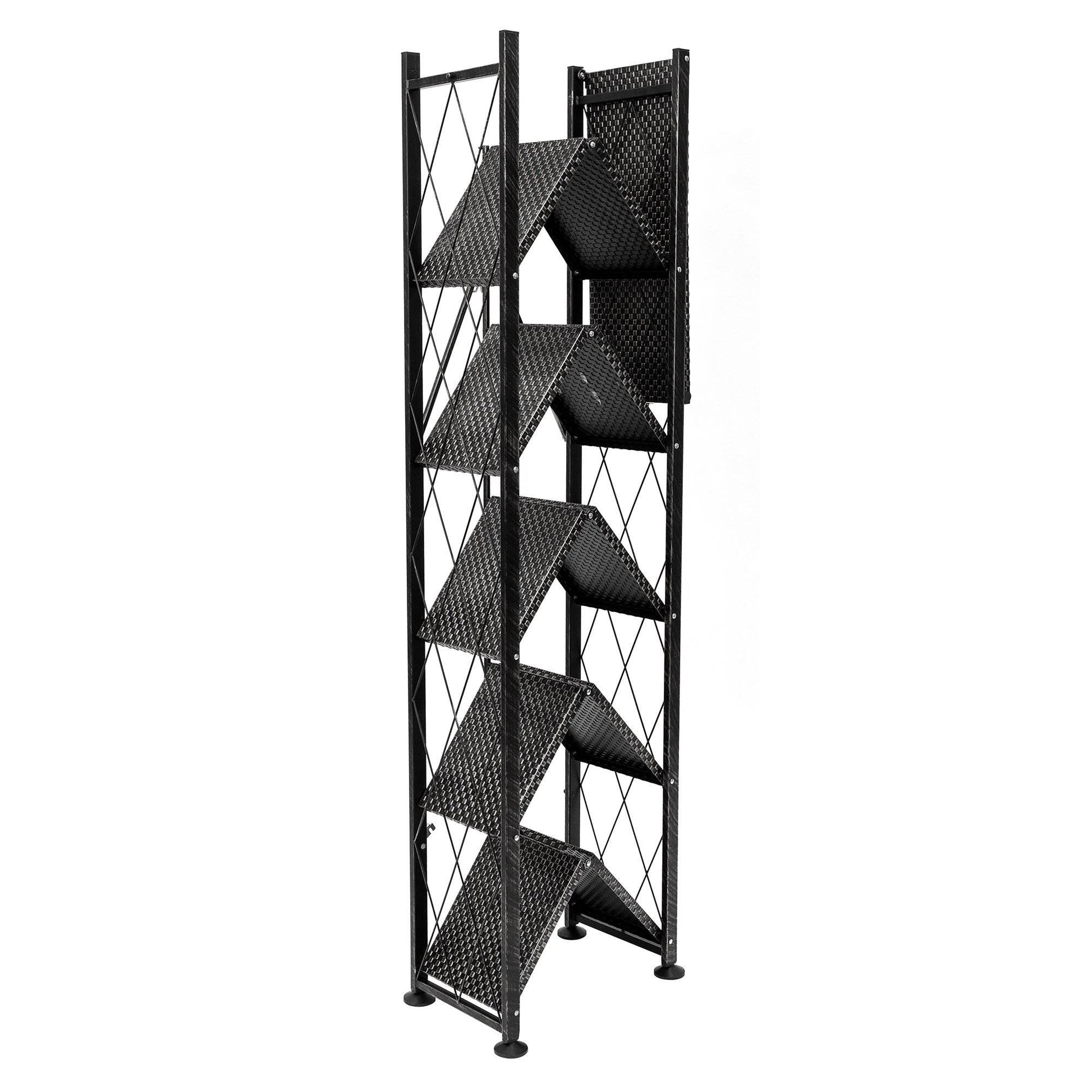Origami 6 Tier Classic Stamped Steel Bookcase Organizer Storage Rack, Black