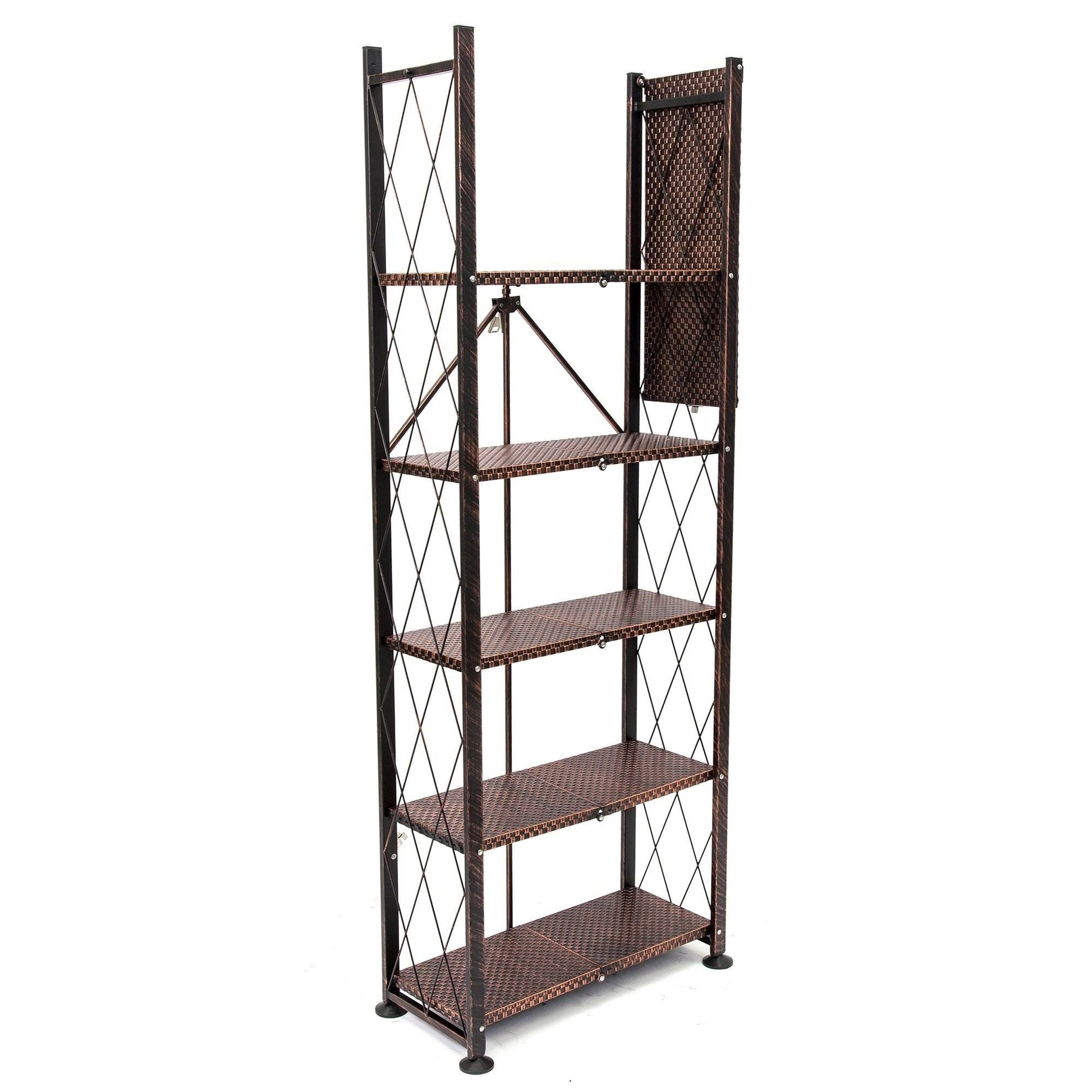 Origami 6 Tier Classic Stamped Steel Bookcase Organizer Storage Rack, Bronze