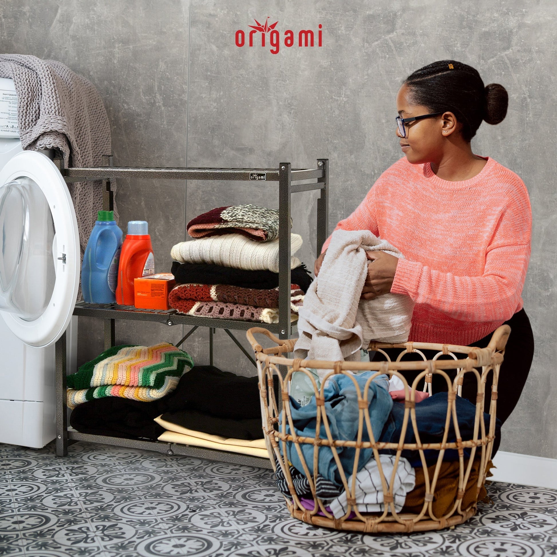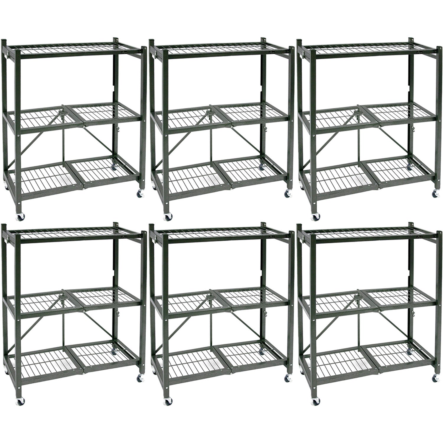 Origami R3 Foldable 3-Tiered Shelf Storage Rack & Wheels, Pewter (6 Pack)