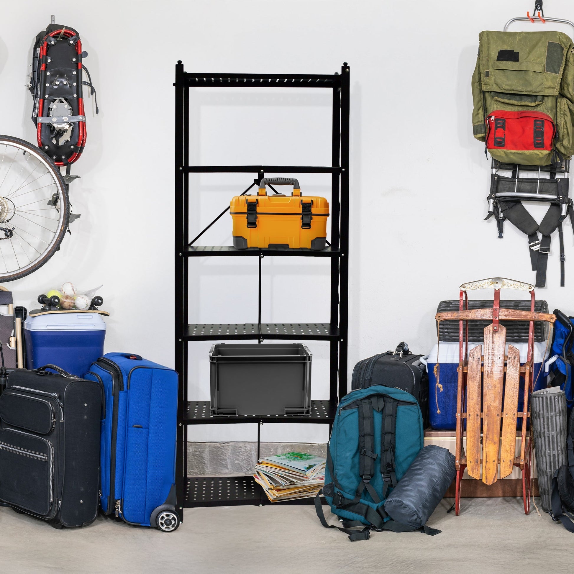 - Made from commercial-grade powder-coated steel, this storage rack boasts a remarkable 600-pound capacity, ensuring durability and reliability