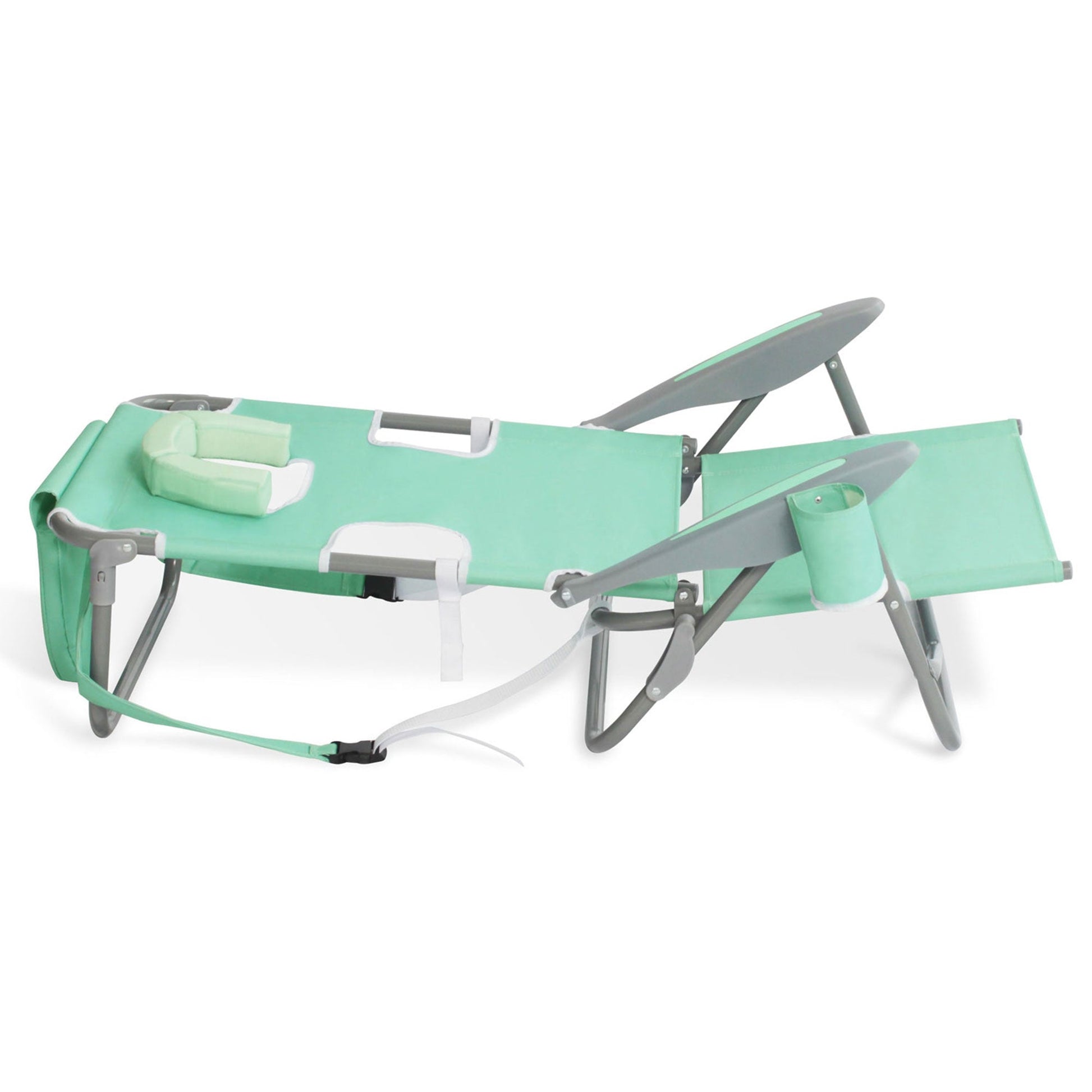 You'll have plenty of tummy time when relaxing on this Ostrich Chaise Lounge Folding Poolside Beach Chair with On Your Back Camping Lawn Chair in Teal from Ostrich, so don't forget your book or magazine at home.