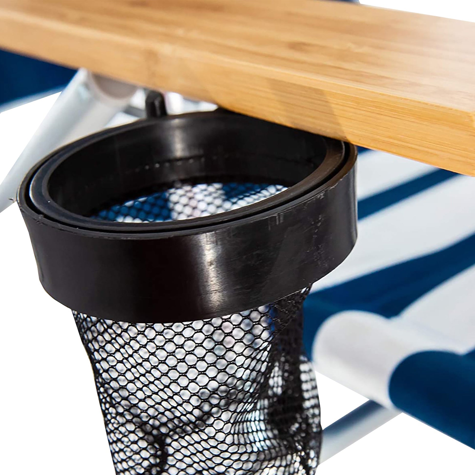 Lie on your back or flip over onto your stomach and use the sports chair's soft, patented face cavity for comfortable rest and rejuvenation. With 15 configurations, it offers a comfortable fit for various activities, including the beach, lake, camping, or backyard pool. The chair's wide wooden armrests and built-in cup holder provide convenient support. Its sturdy aluminum frame can support up to 275 pounds.