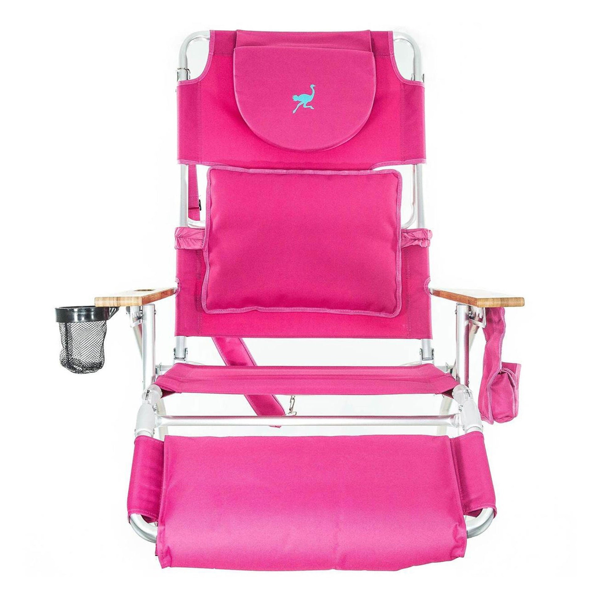 Meanwhile, the Ladies Comfort beach chair features an innovative patented breast cavity that expands and contracts to comfortably accommodate and support varying-sized women while lying in a prone position. Featuring 5 adjustable chair positions for maximum relaxation and a rust-proof aluminum design, you'll take this chair anywhere for many years. This chair also integrates the OstrichChairs' patented open/close face cavity and arm cutouts for reading or tanning face down. It has backpack straps, umbrella carry-straps, and a cup holder for convenience.