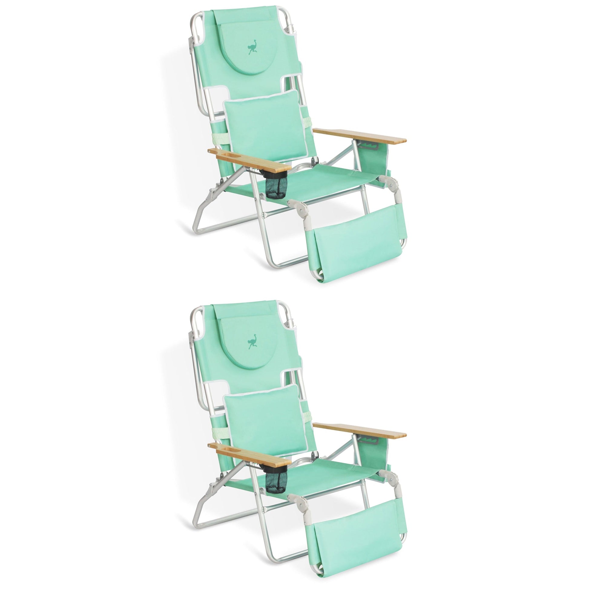 Ostrich Deluxe Padded 3-N-1 Outdoor Folding Reclining Beach Chair, Teal (2 Pack)
