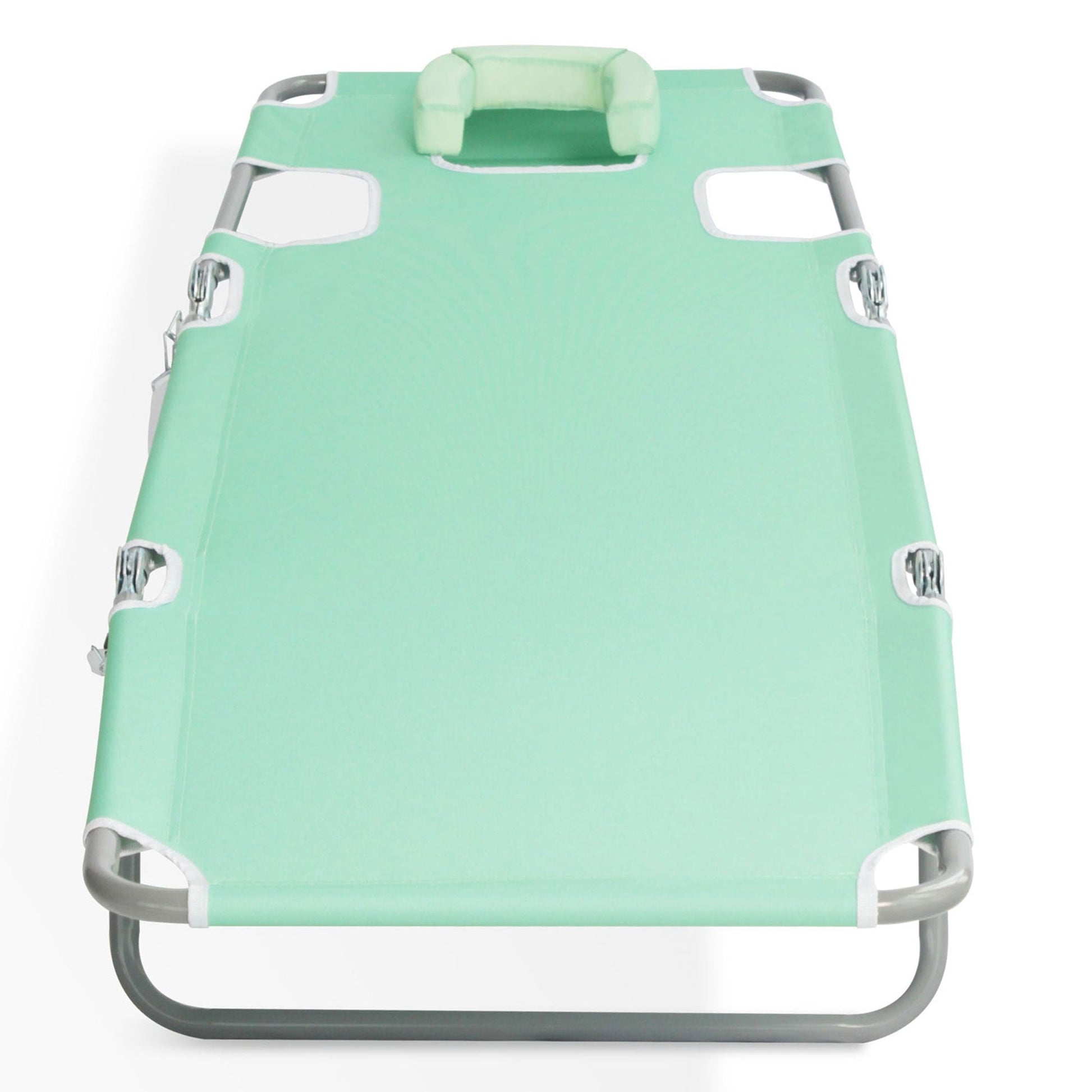 Featuring an open-and-close face cavity with armholes for breathability, you'll be able to achieve a comfortable position for a relaxing day of sun. Customize your comfort with 4-position options to recline or lay flat. Simply fold down and pick up the carrying straps you're ready to go, allowing you to have your hand free to tote your other necessities. These tanning loungers are constructed of powdered steel, support up to 250 pounds, and show off a soft teal color fabric made of durable polyester.