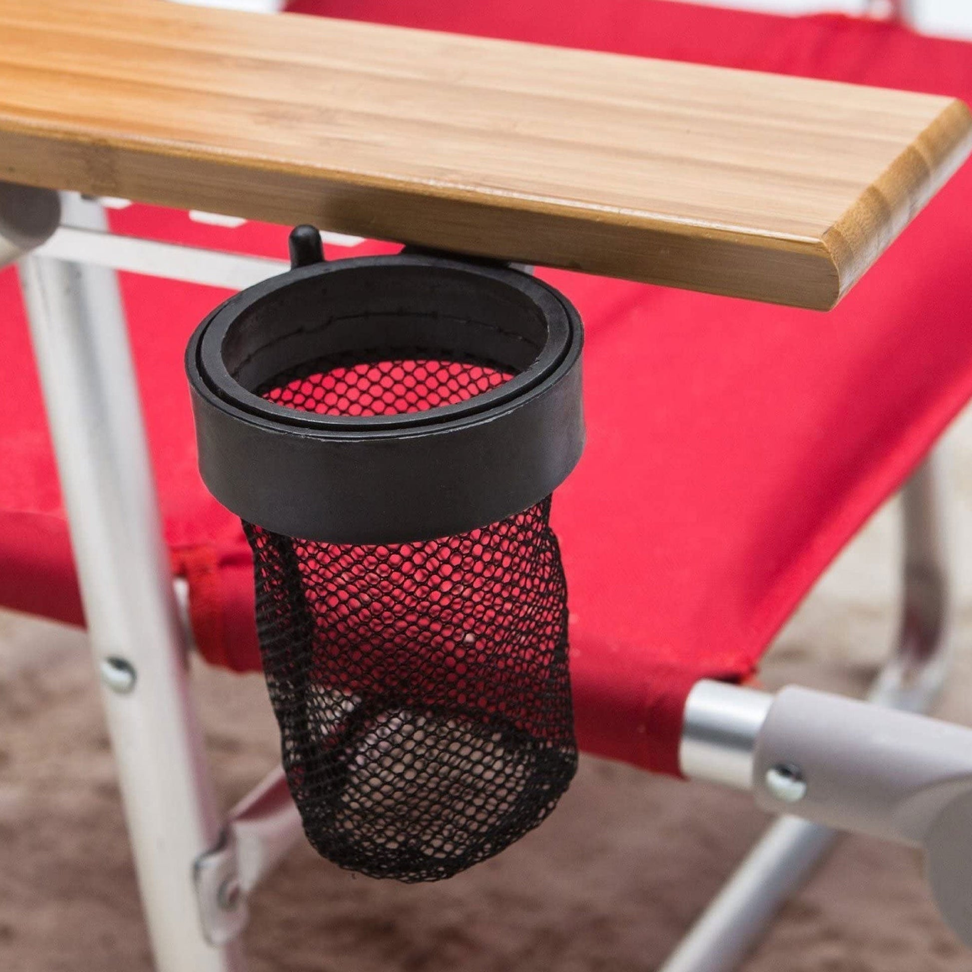 - Carry strap included for easy transportation with 1 built-in cup holder and extra-wide wooden armrest for added convenience