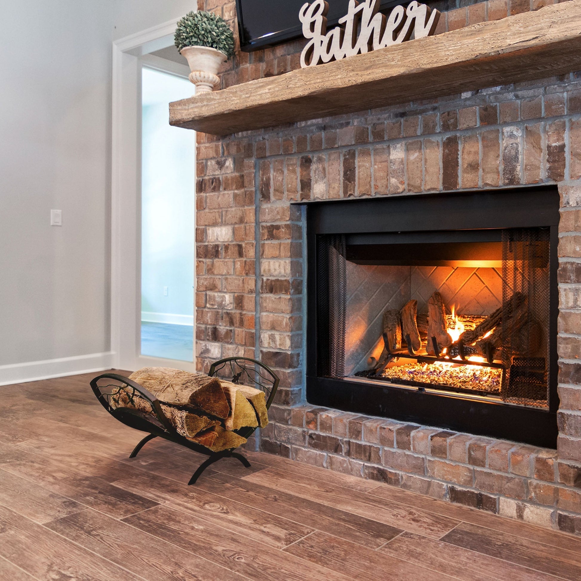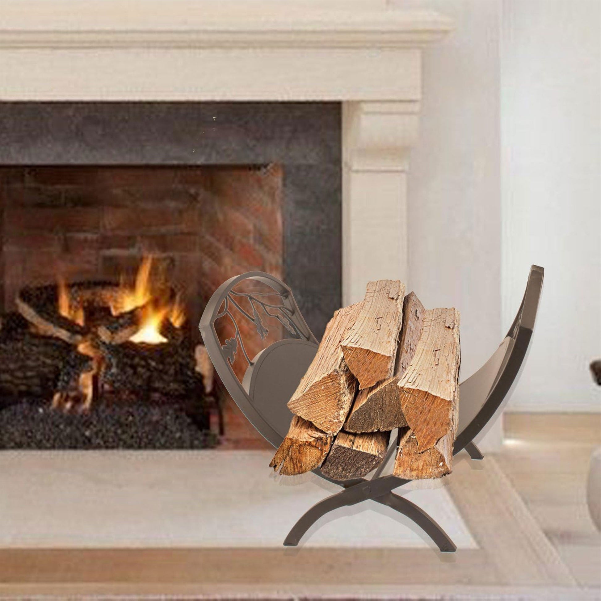 Experience the convenience of no assembly by simply pulling open to stack logs and fold up for easy storage. This innovative design strikes the balance between portability and design, allowing you to tuck it away in any small space until needed, ensuring a clutter-free environment. This log bin doesn't just stop at functionality, it seamlessly blends elegance with utility. Adorned with embossed oak leaves on slender branches, the top section of each side boasts a decorative touch that enhances the overall aesthetic. These exquisite details are supported by solid metal panels, ensuring strength and durability for long-lasting use. Crafted with heavy-duty hinges, the powder-coated steel construction guarantees stability while stacking logs. The capped legs of this fireplace essential add an extra layer of protection, preventing any scratches on your floors. This fireplace log holder is not just a storage solution, it's a statement piece that elevates the ambiance of your space.