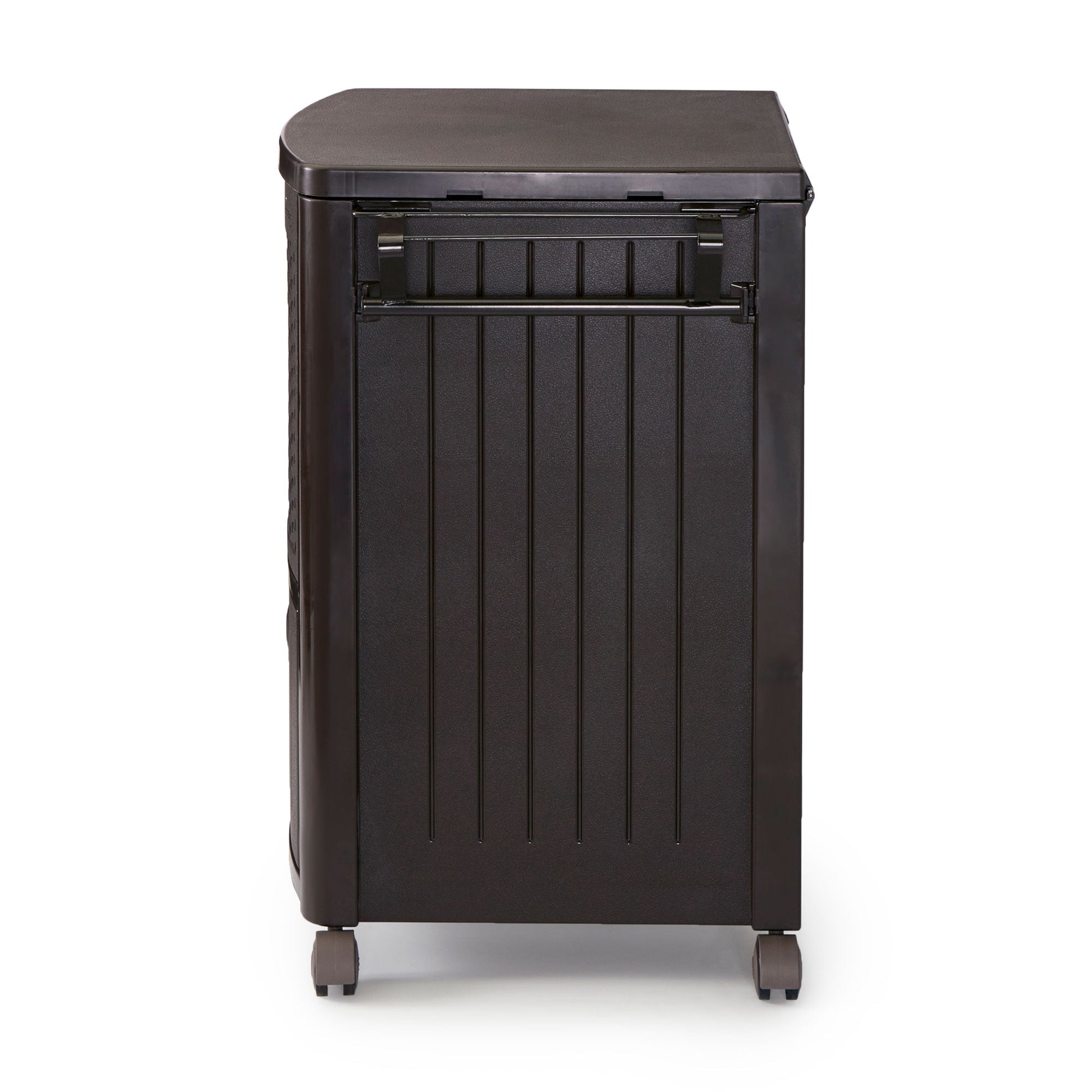 - Suncast 77 Quart Resin Wicker Patio Cooler with Cabinet and Wire Basket, Java
