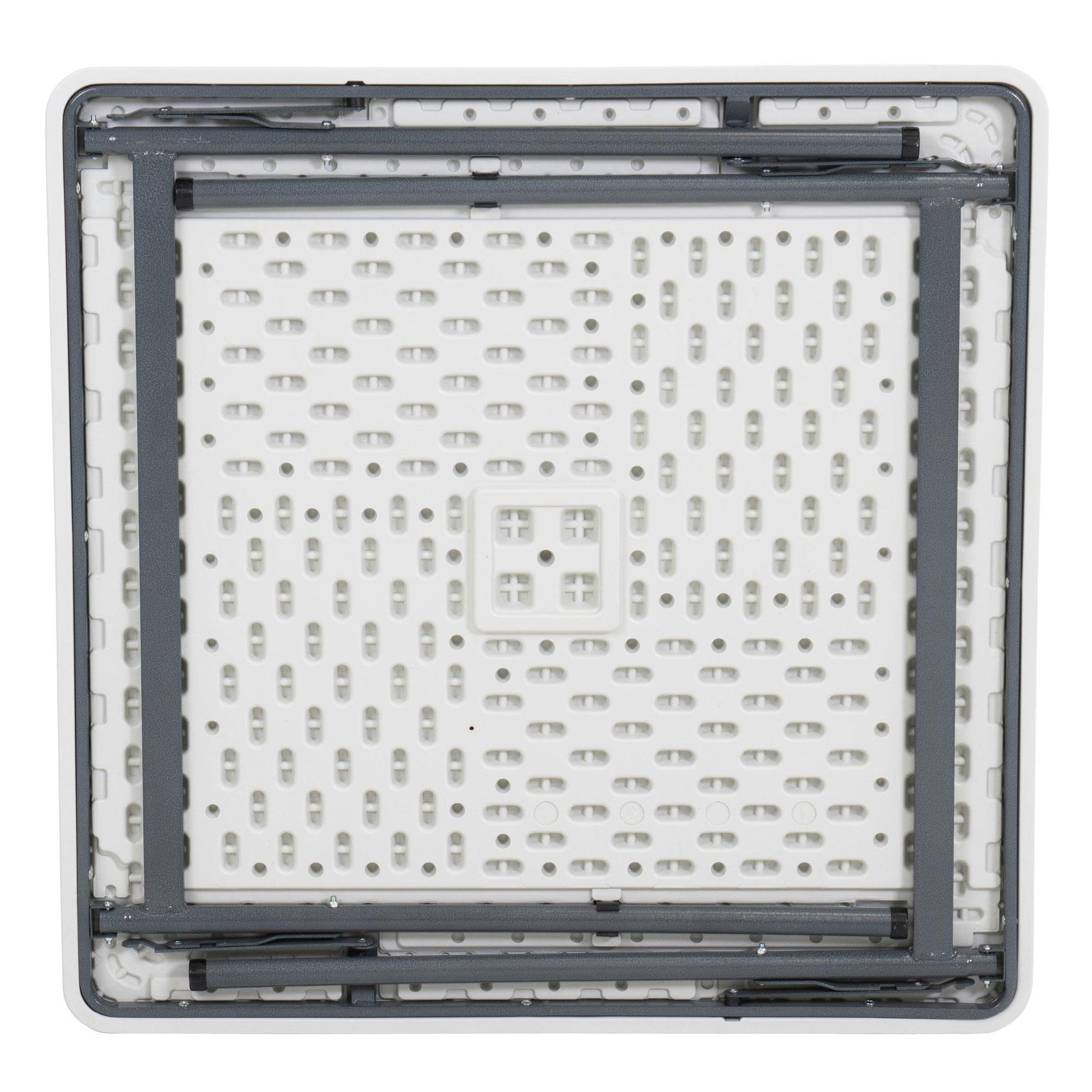 - Square, 34-Inch folding table is ideal for outdoor dining, family reunions, and parties, and also serves as an ideal work table for your basement or garage