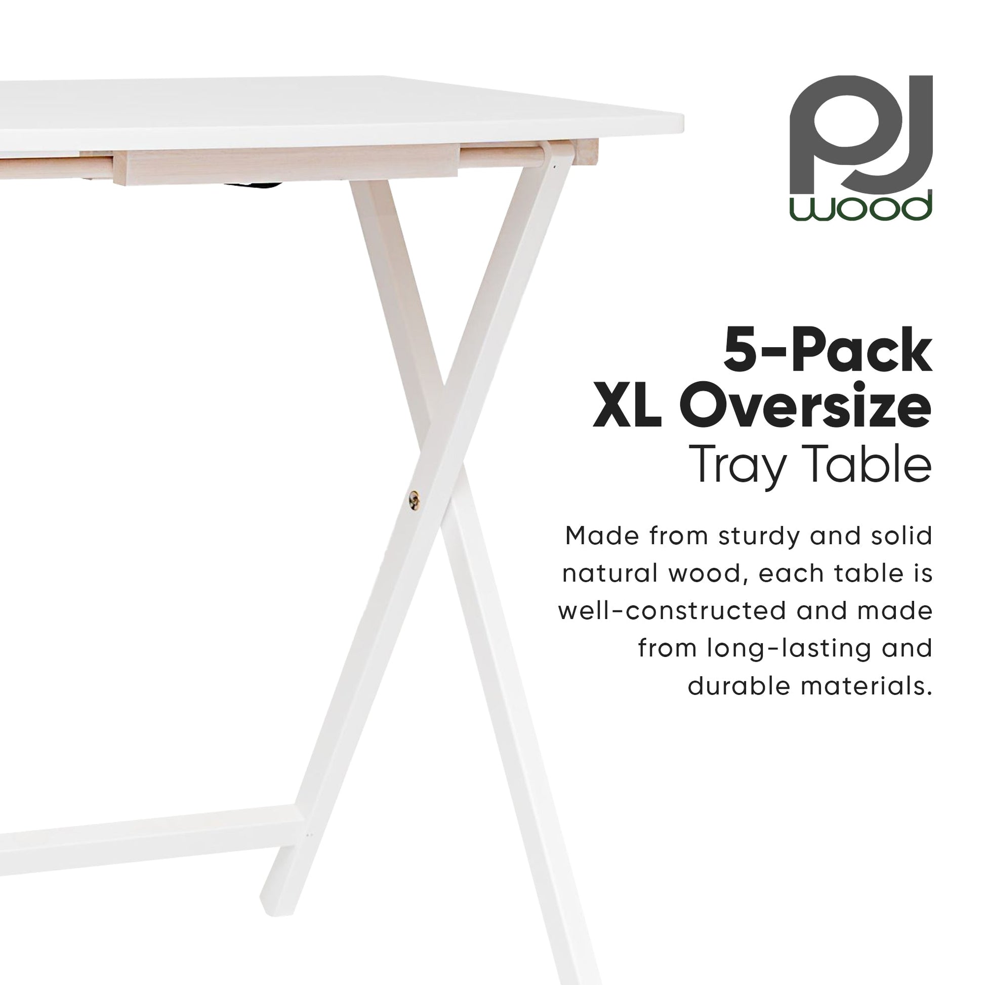- PJ Wood 5 Pack XL Oversize Tray Table set is perfect for dining, working, or entertaining, offering stylish functionality for any room