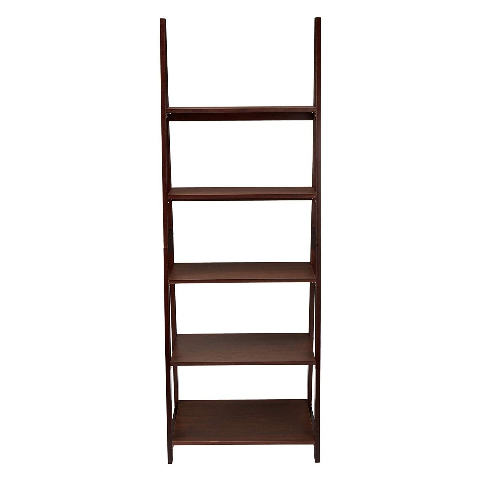 PJ Wood 5 Tier Wooden Ladder Shelf Organizer Bookcase Home Display, Espresso