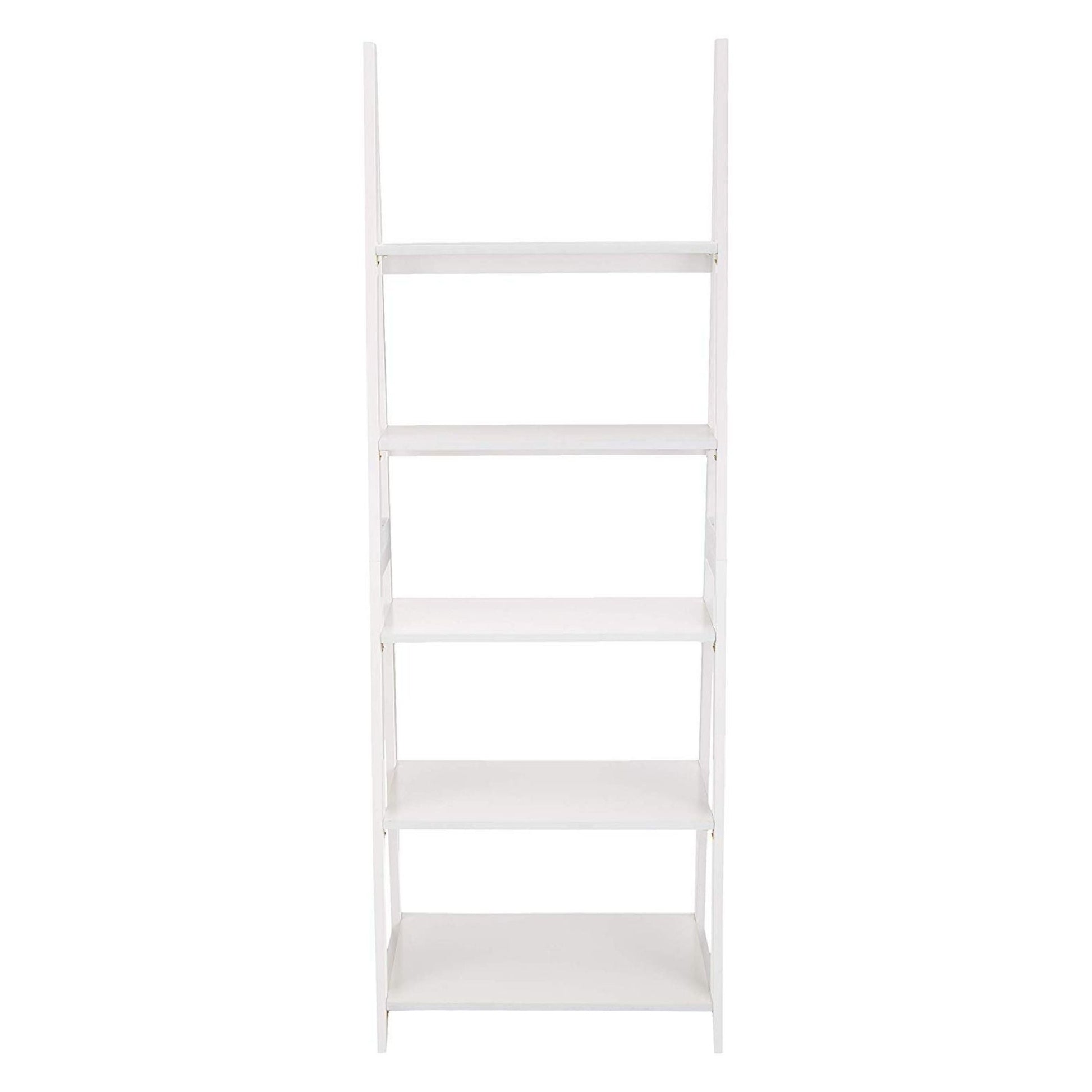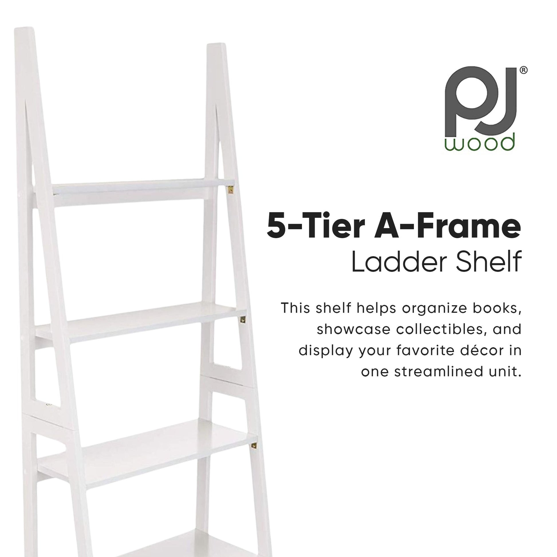 PJ Wood 5 Tier Wooden Ladder Shelf Organizer Bookcase Home Display Stand, White