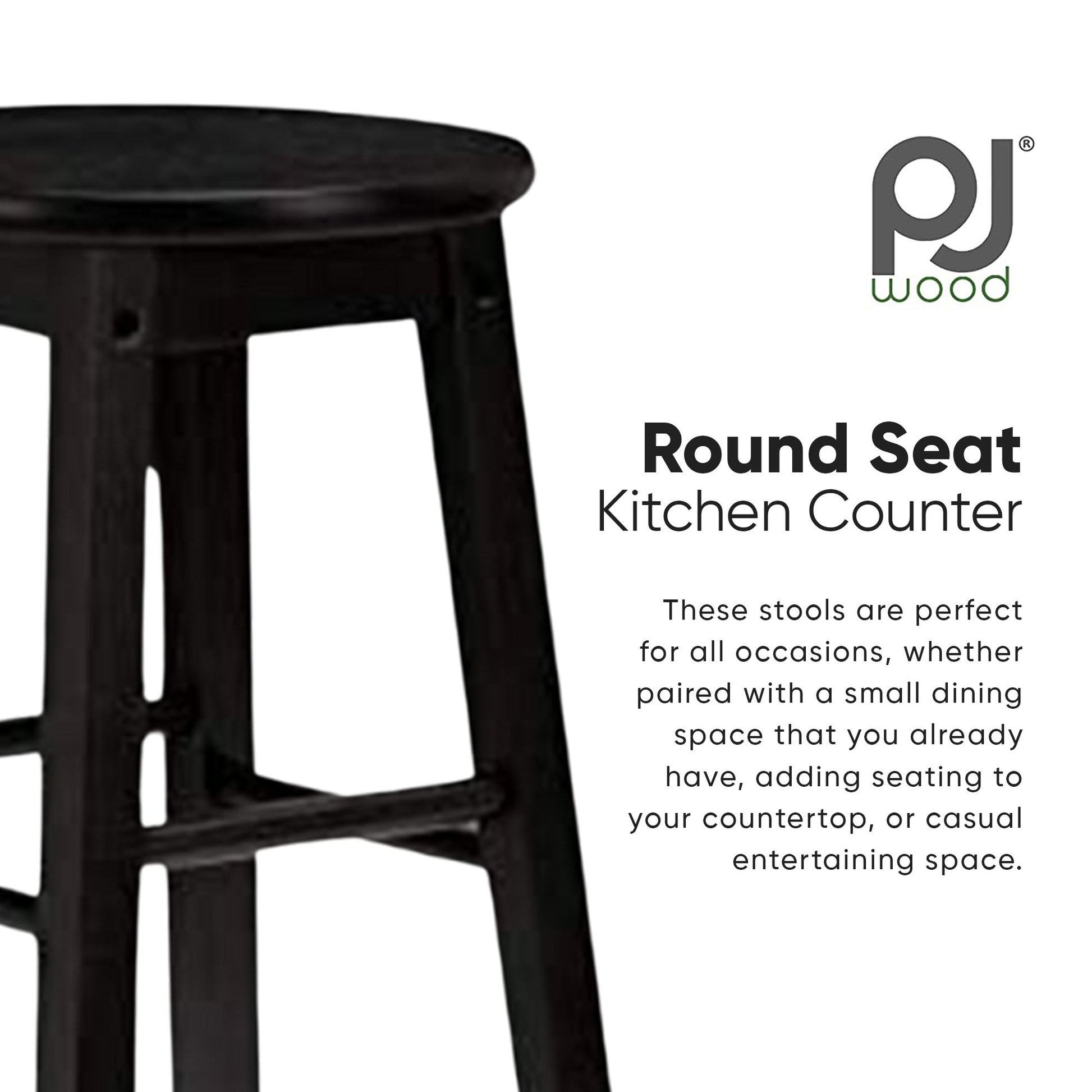 PJ Wood Classic Round-Seat 24 Inch Kitchen and Counter Stools, Black, Set of 2