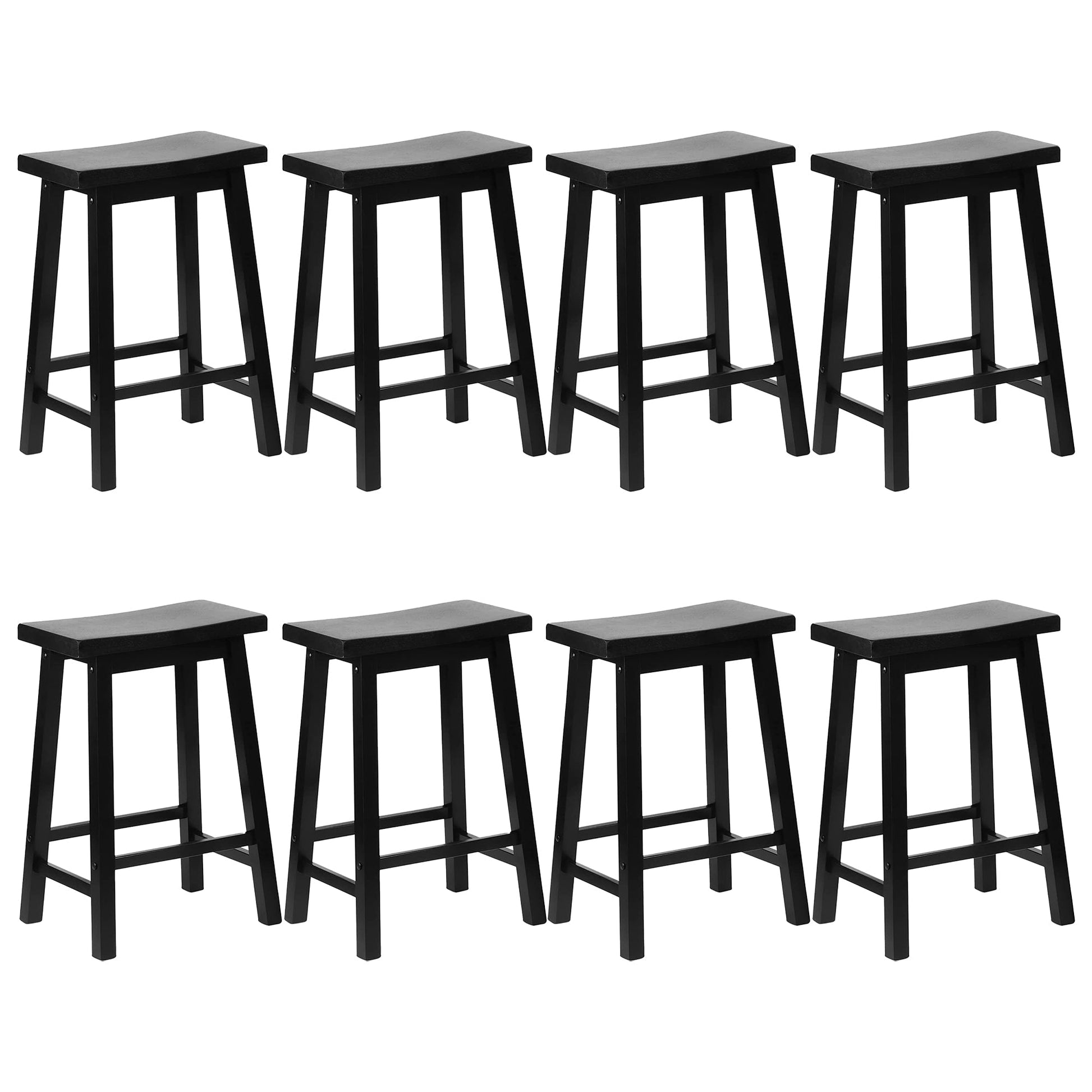 PJ Wood Classic Saddle Seat 24" Tall Kitchen Counter Stools, Black (Set of 8)