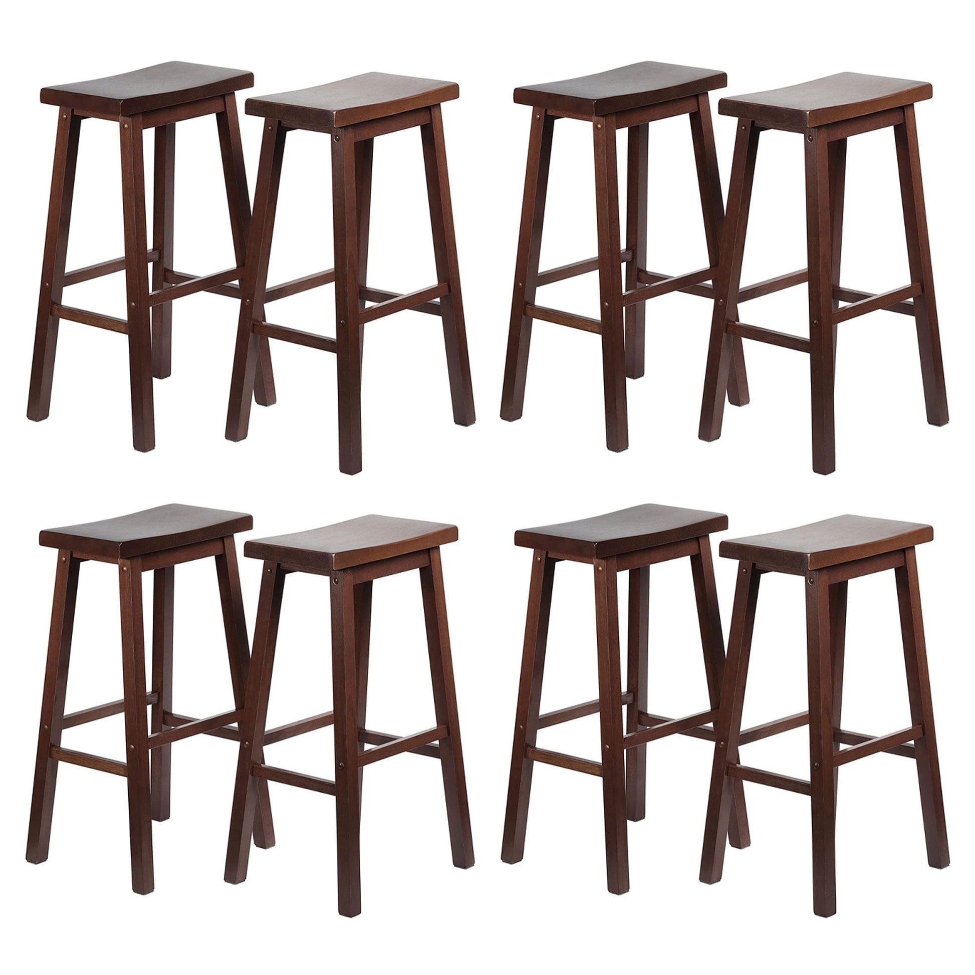PJ Wood Classic Saddle Seat 29" Tall Kitchen Counter Stools, Walnut (Set of 8)