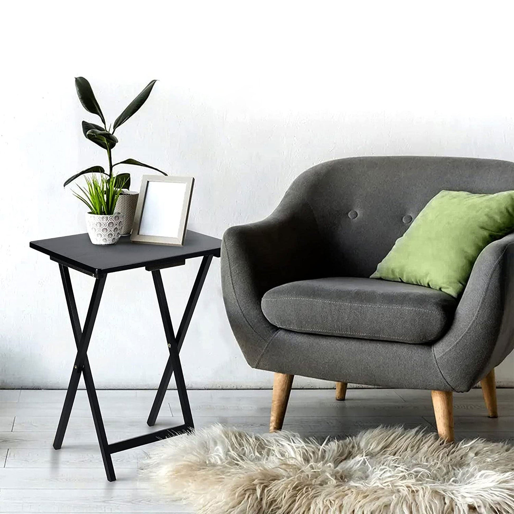 PJ Wood Folding TV Tray Tables with Compact Storage Rack, Black, 5 Piece Set