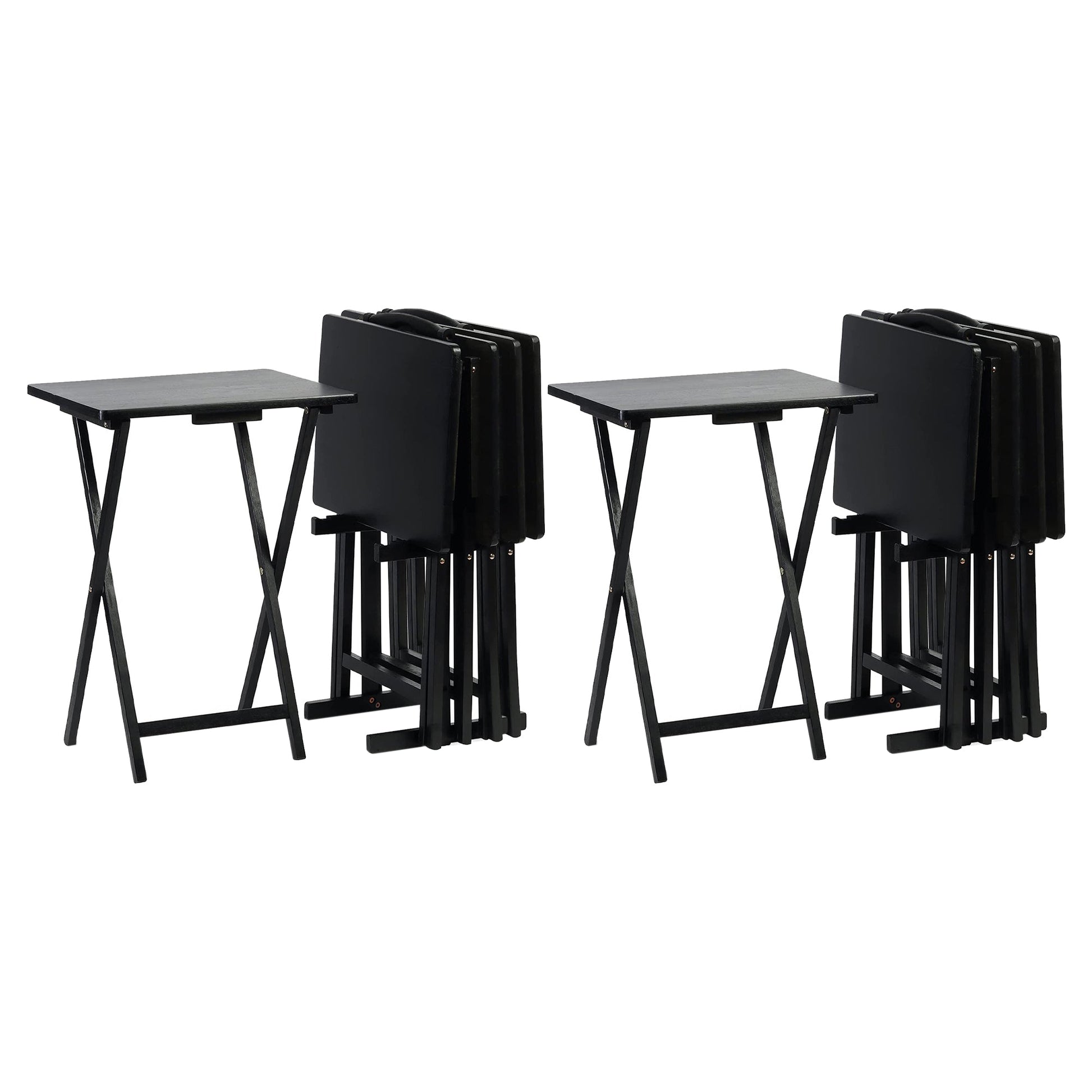 PJ Wood Portable Folding TV Snack Tray Table Desk Stand, Black (10 Piece Set)