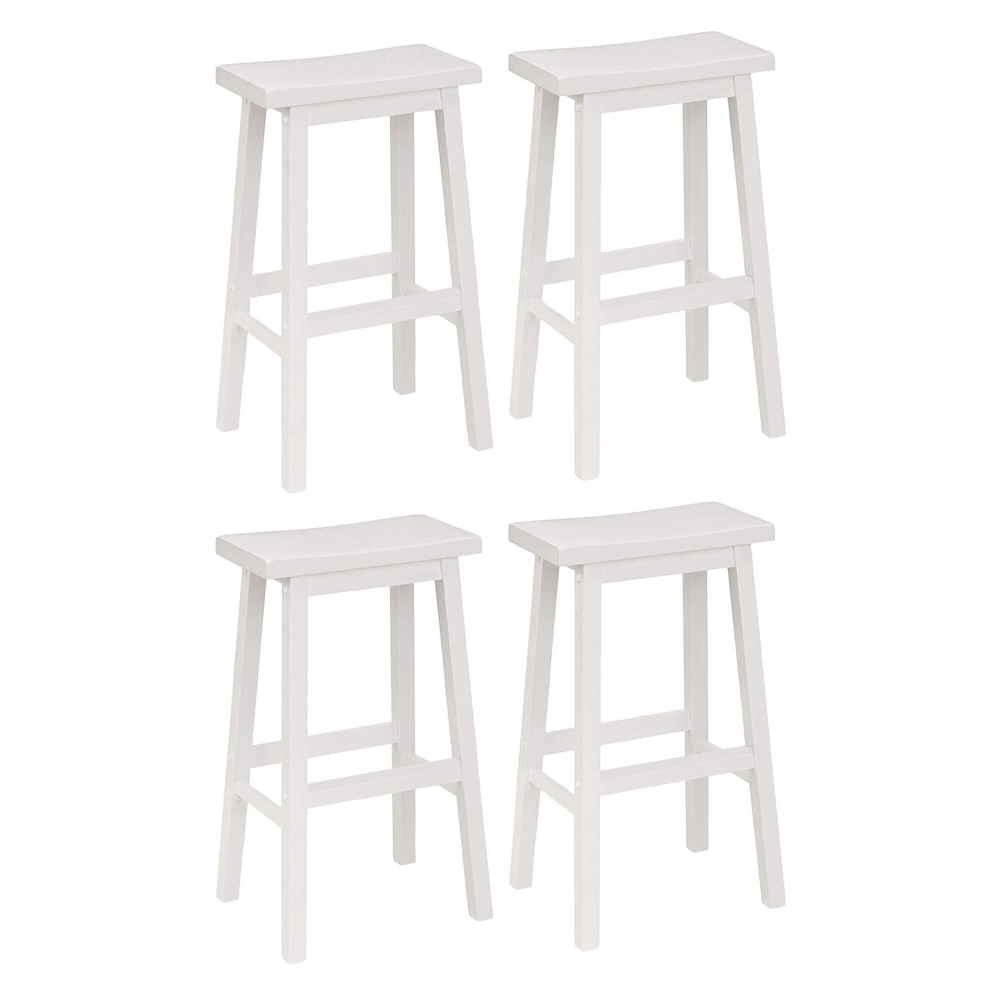 PJ Wood Classic 29 Inch Saddle Seat Kitchen Bar Counter Stool, White (4 Pack)