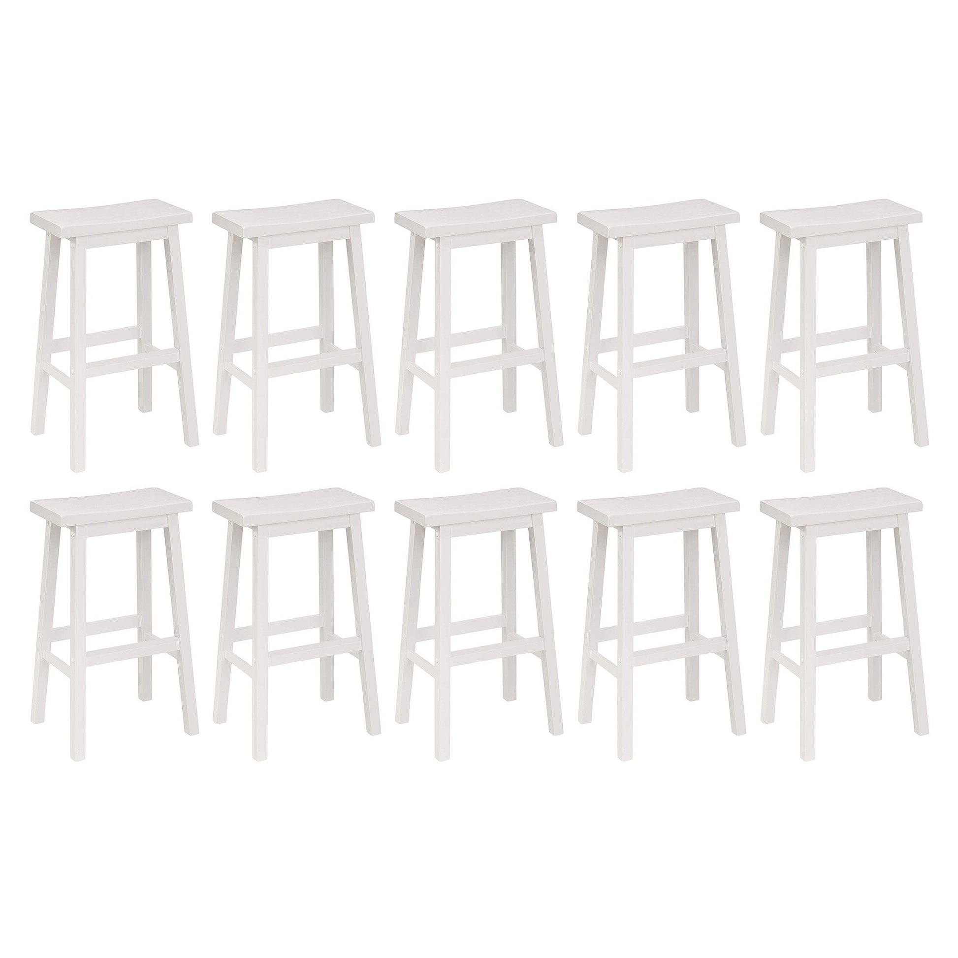 PJ Wood Classic 29 Inch Saddle Seat Kitchen Bar Counter Stool, White (10 Pack)