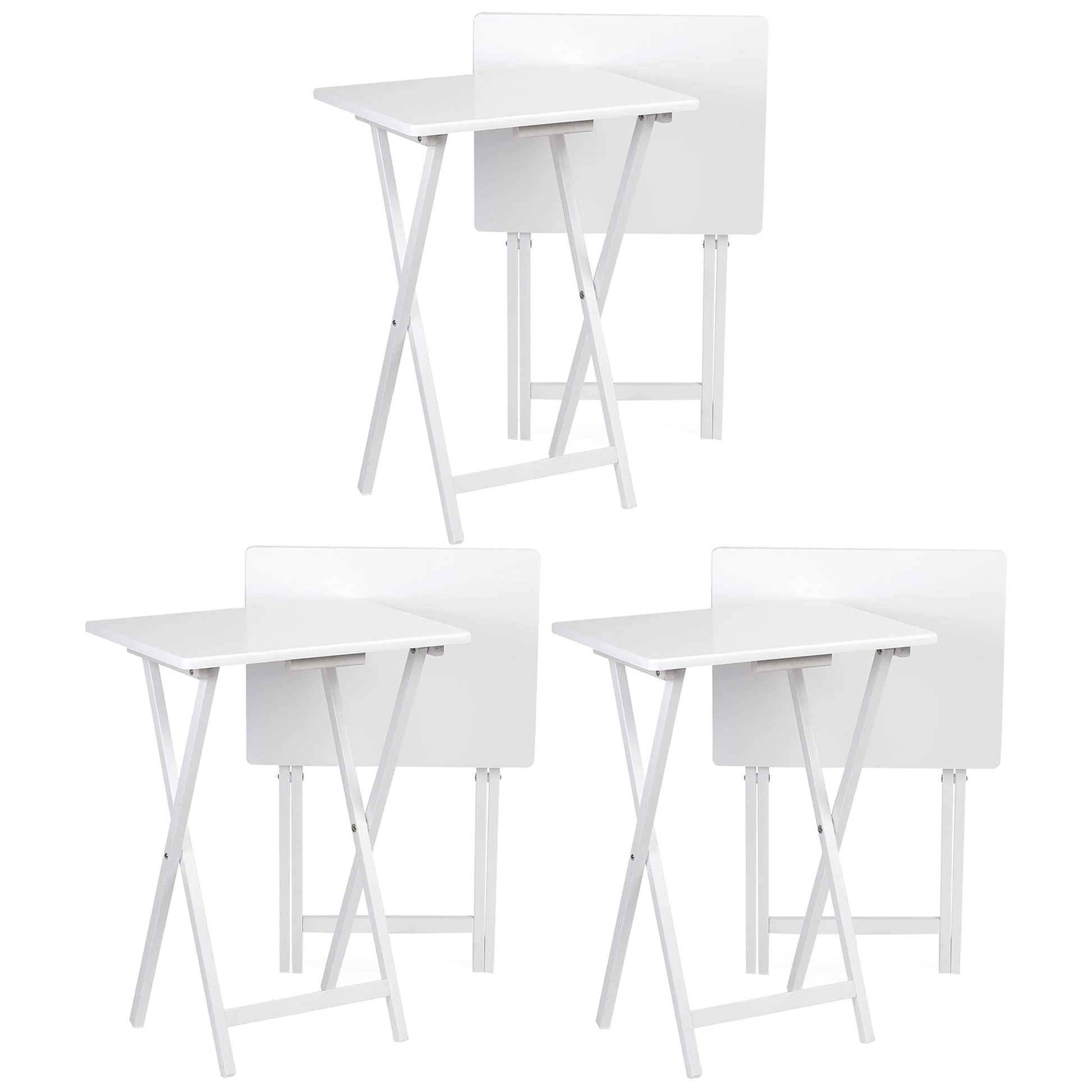 PJ Wood Portable Folding TV Snack Tray Table Desk Stand, White (6 Piece Set)