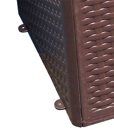 - Double-wall resin construction with a molded lid and lid retainer straps ensure ultimate security while it sits outside