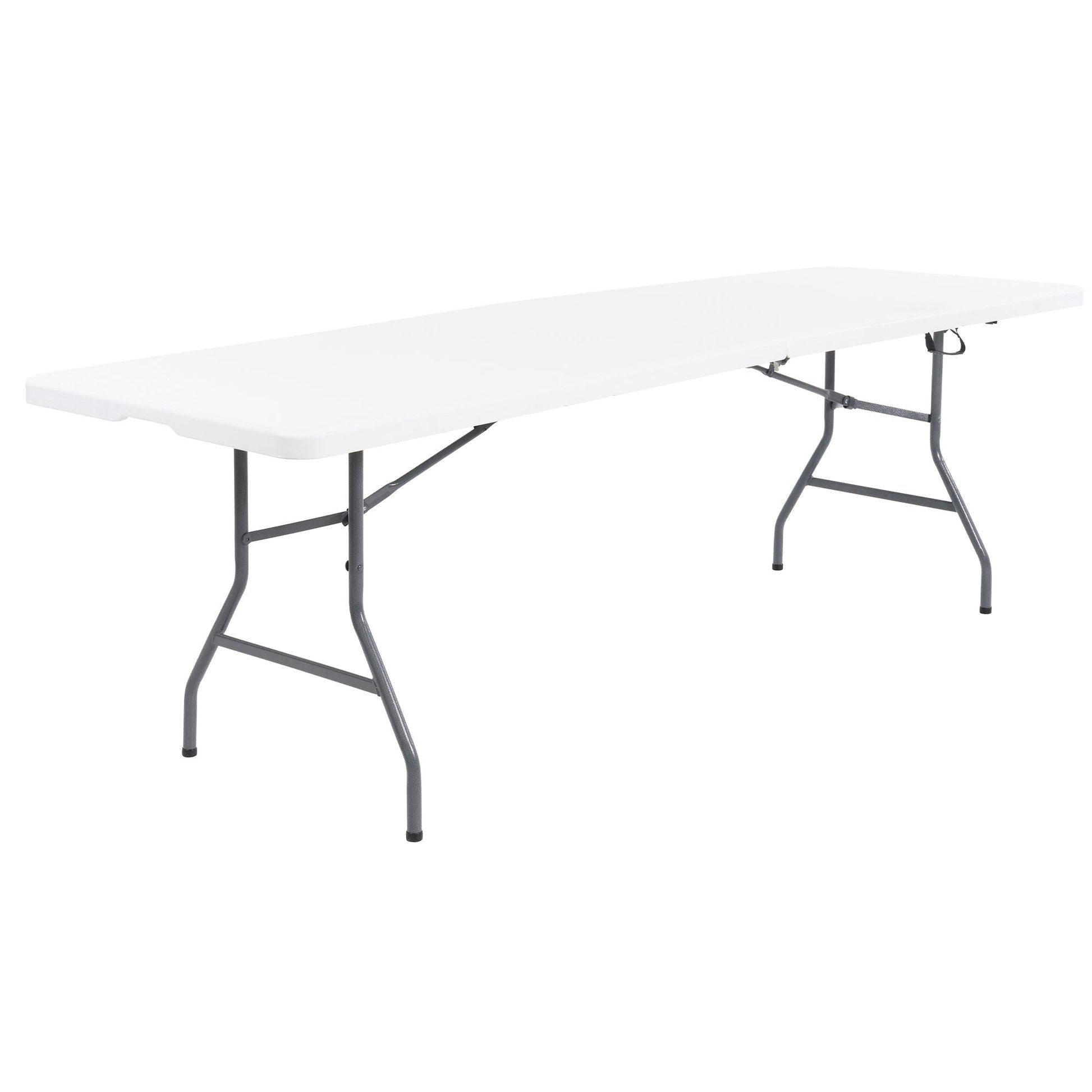 - Gather around this 8-foot folding table, great for outdoor dining or entertainment, family reunions, and parties, or as a work table in the basement or garage