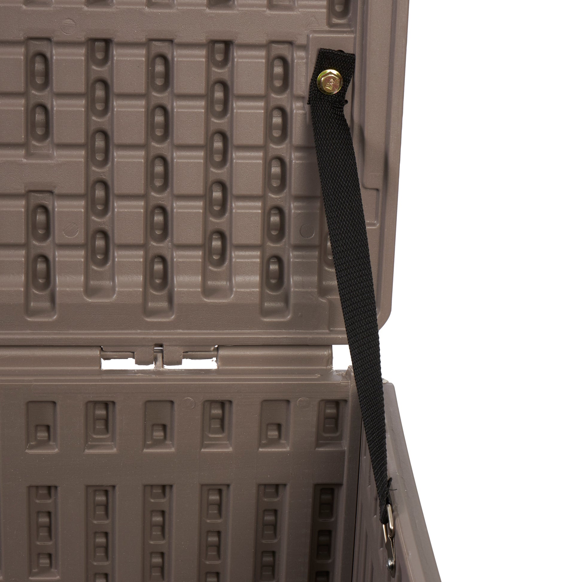 Ideal for your backyard patio, this versatile storage bin can be used to hold cushions, tools, pool toys, and more accessories. With a spacious 99-gallon capacity, the opportunities are endless. Featuring a double-wall resin design, this bin has a molded lid hinge and a soft-close lid that ensure your belongings stay safely secure. The deck box resists weather elements and has a unique, wood-like pattern that will complement any existing outdoor furniture.