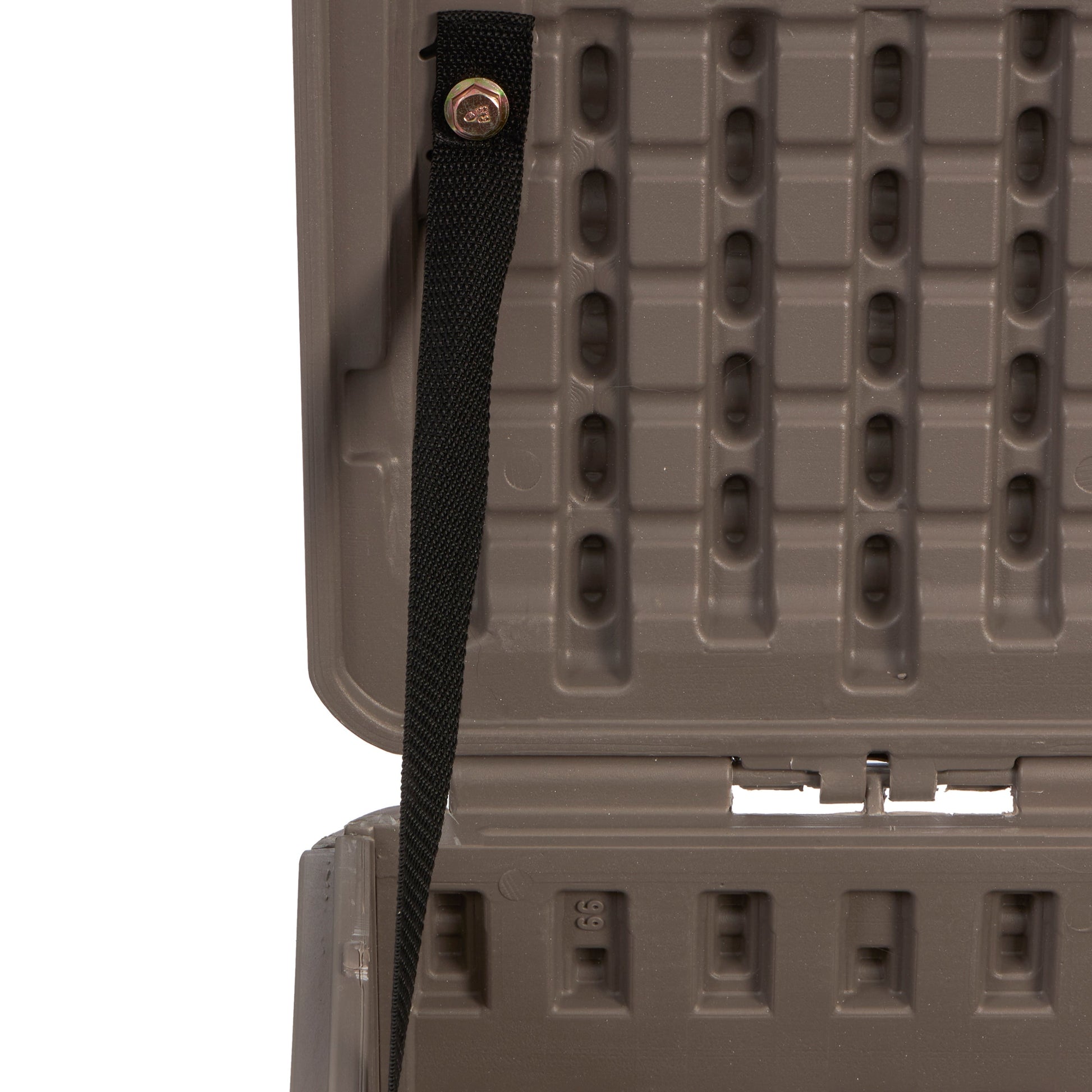 - Double-wall resin construction with molded lid thing and soft-close lid retainer straps ensure ultimate security