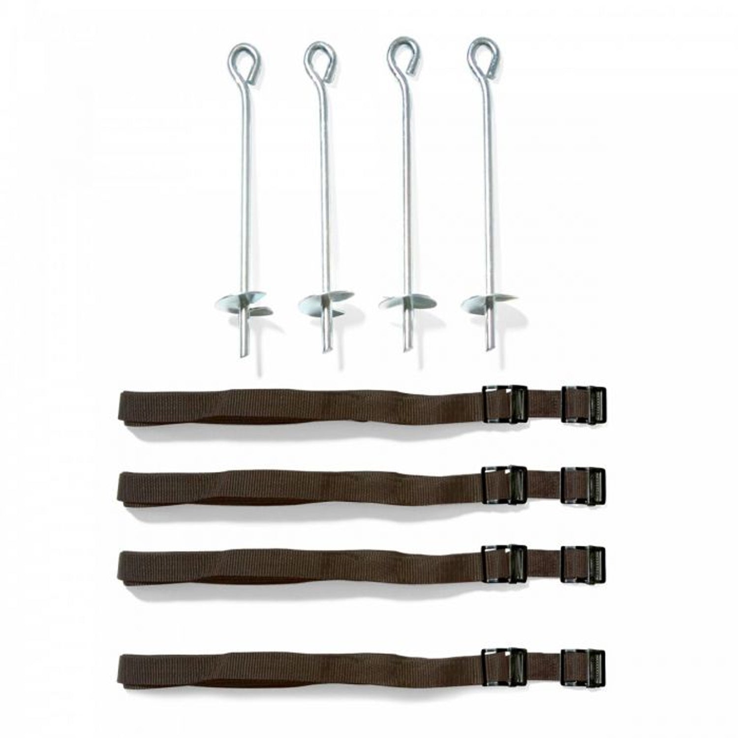 - Anchor kit secures your trampoline to the ground, preventing it from blowing away in strong winds and storms