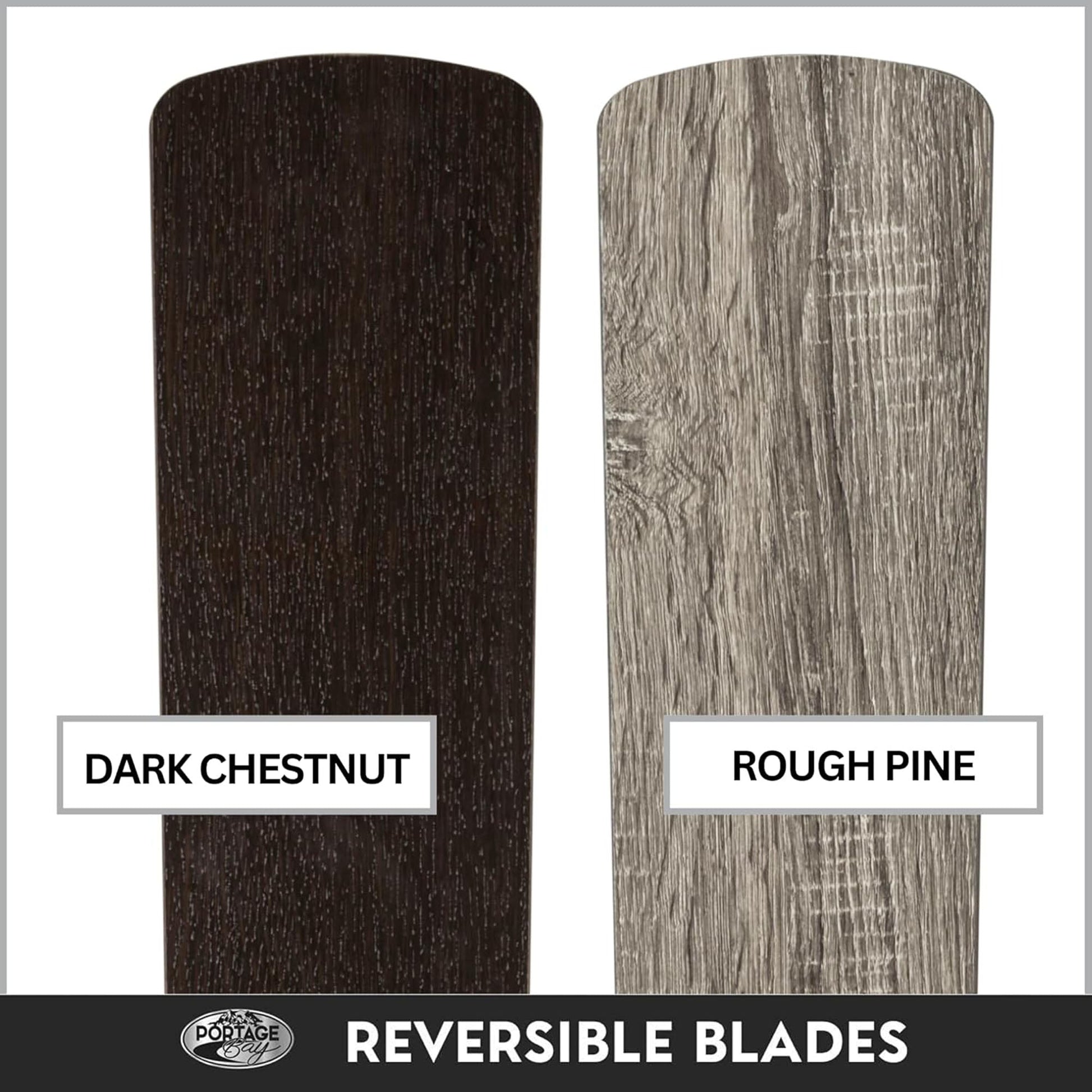 - Reversible blade in dark chestnut and rough pine ensures the ceiling fan will blend in with existing decor
