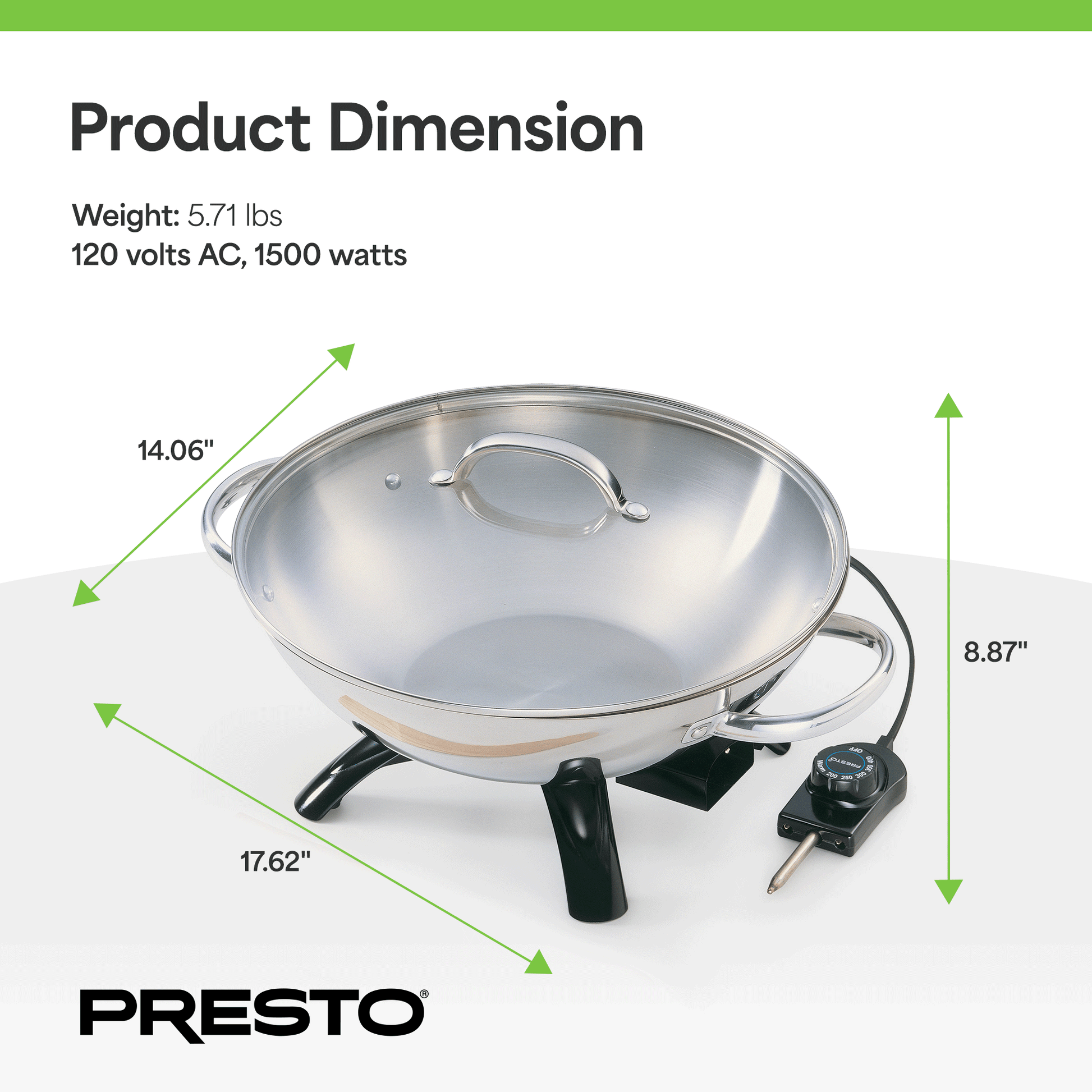 Presto 1500 Watt Stainless Steel Electric Wok with Glass Lid and Wooden Spatula