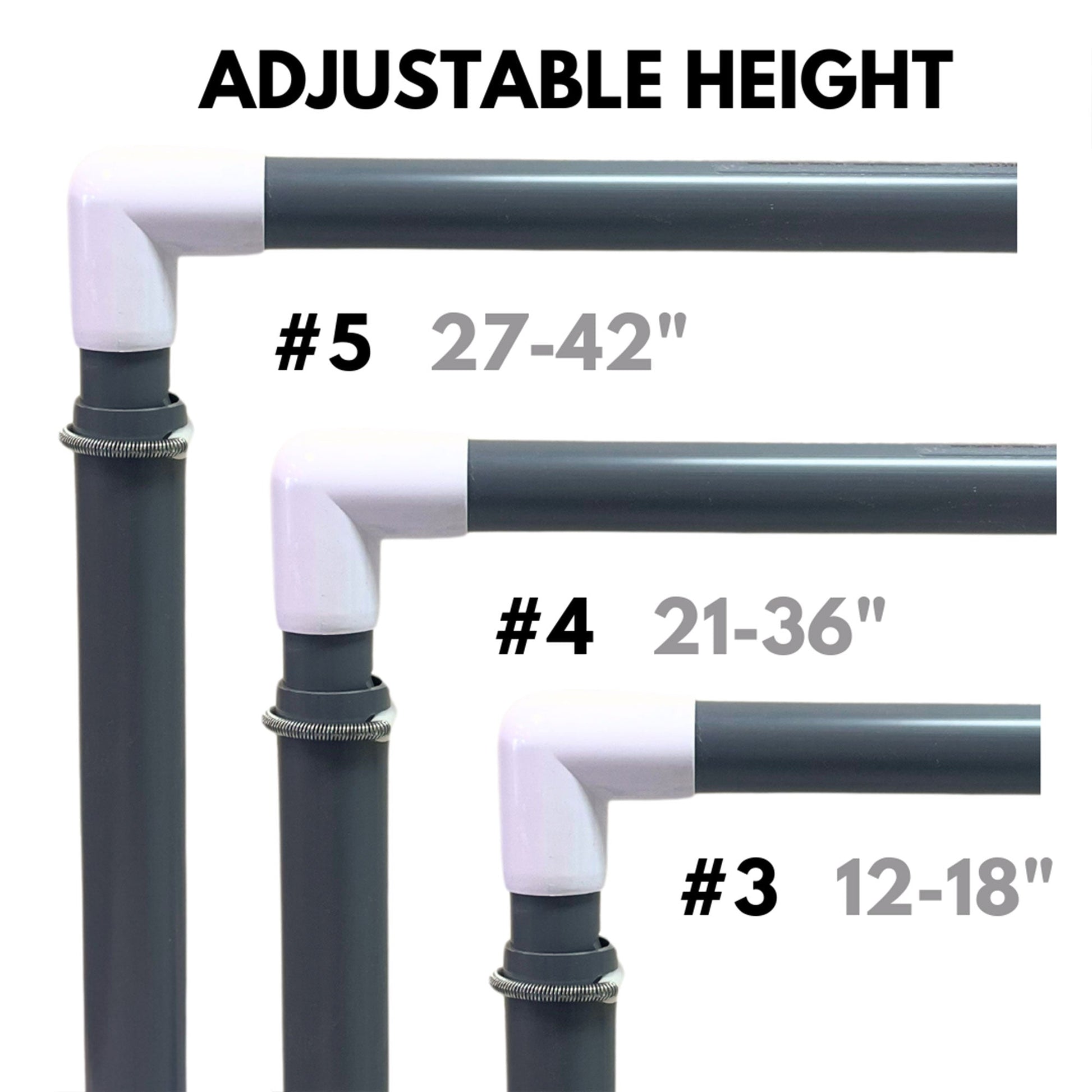 - Set of 3 height adjustable hurdles that can be set between 27 to 42 inches