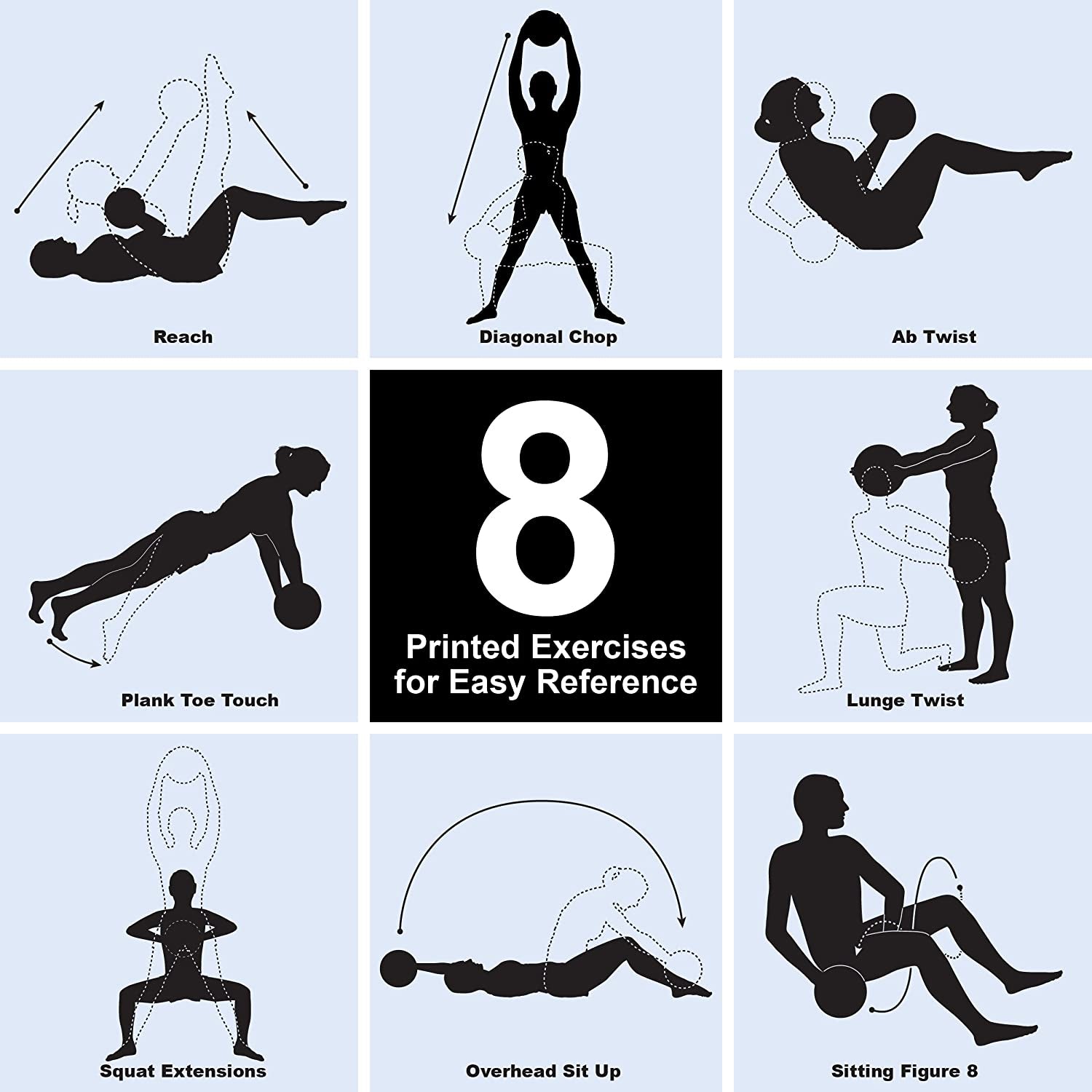 - 8 exercises are printed on the ball surface to get you started and make the most out of your workout