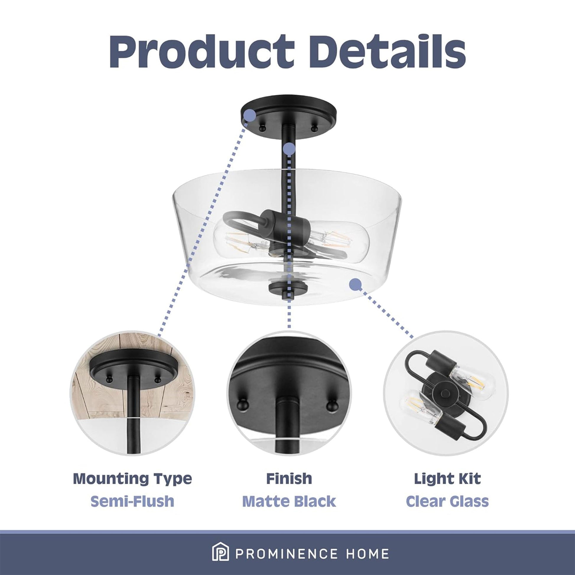 Prominence Home 2 Light Ceiling Fixture Clear Glass Lighting 13" Viktoria, Black