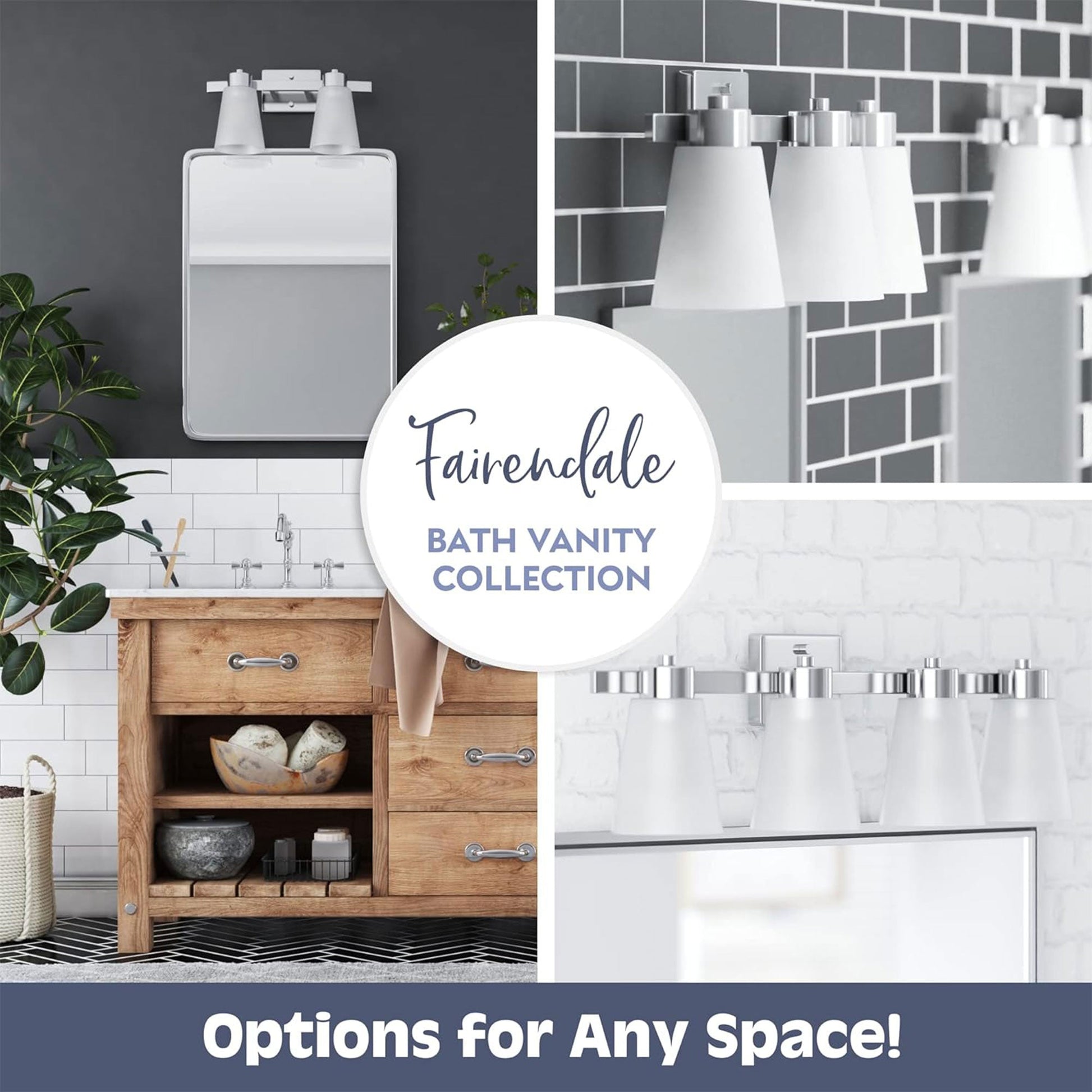 Elevate your bathroom or vanity space with the Prominence Home Fairendale 2-Light Vanity Light. This modern wall fixture features a clean, modern finish and frosted glass shades that bring a perfect balance of bold style and soft illumination. Whether placed above a mirror or in a damp space like a bathroom, it offers dependable lighting with contemporary flair.