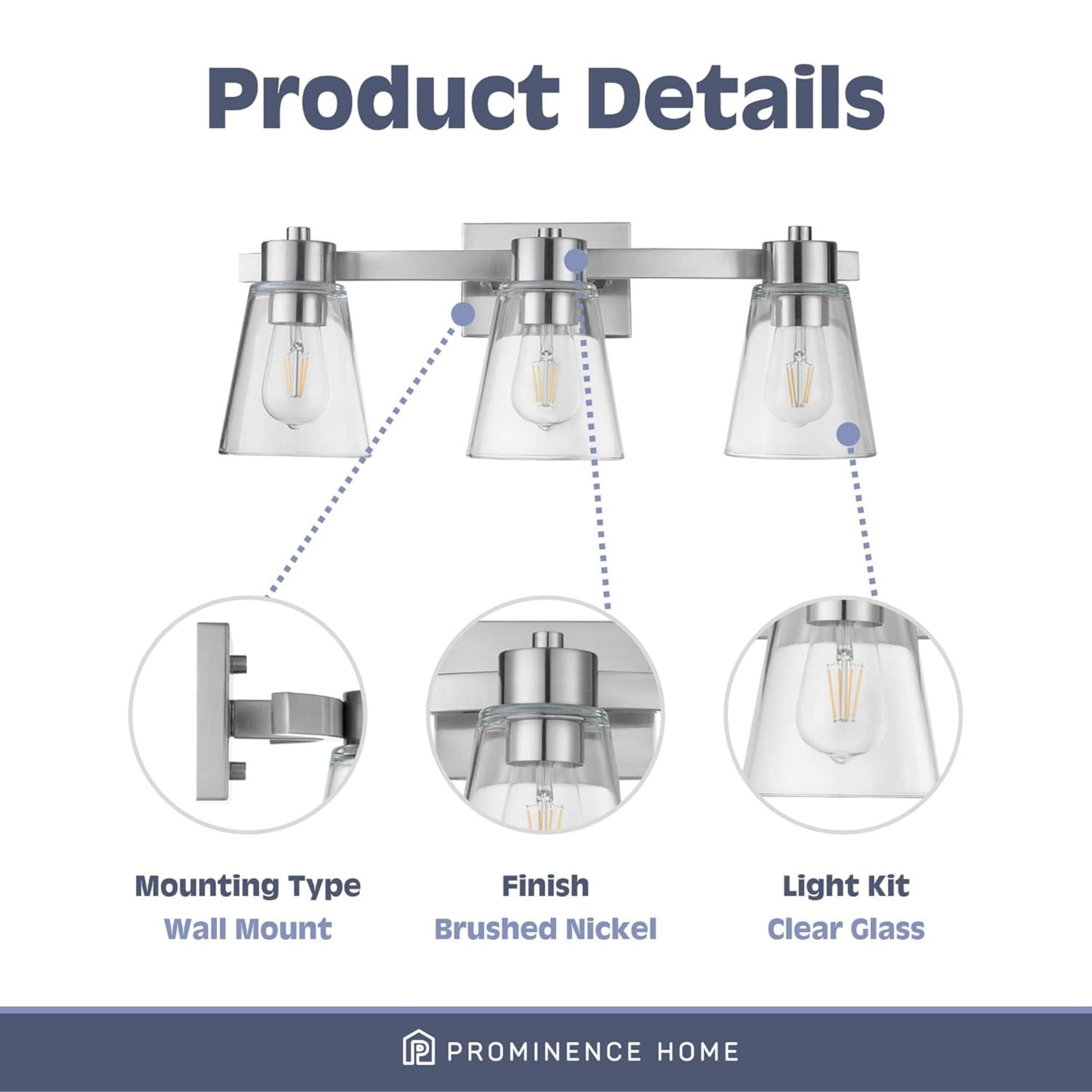 Prominence Home Fairendale 3 Light Bathroom Wall Vanity Light, Brushed Nickel