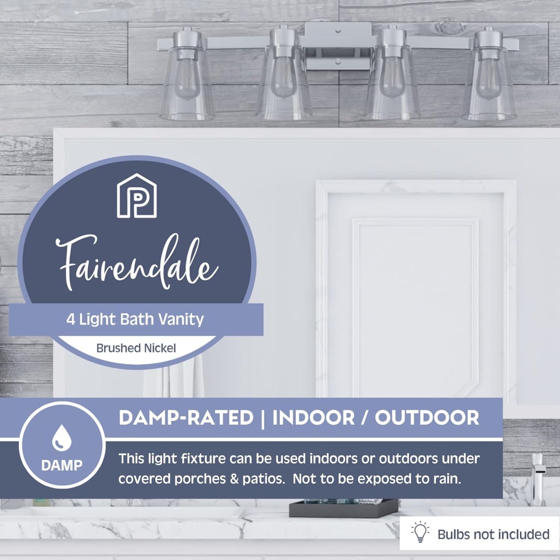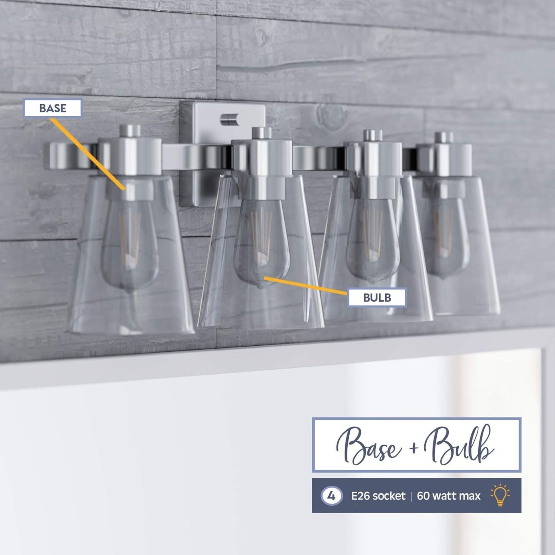 - Supports (4) E26/medium base bulbs (60W max, not included) to provide illumination for grooming