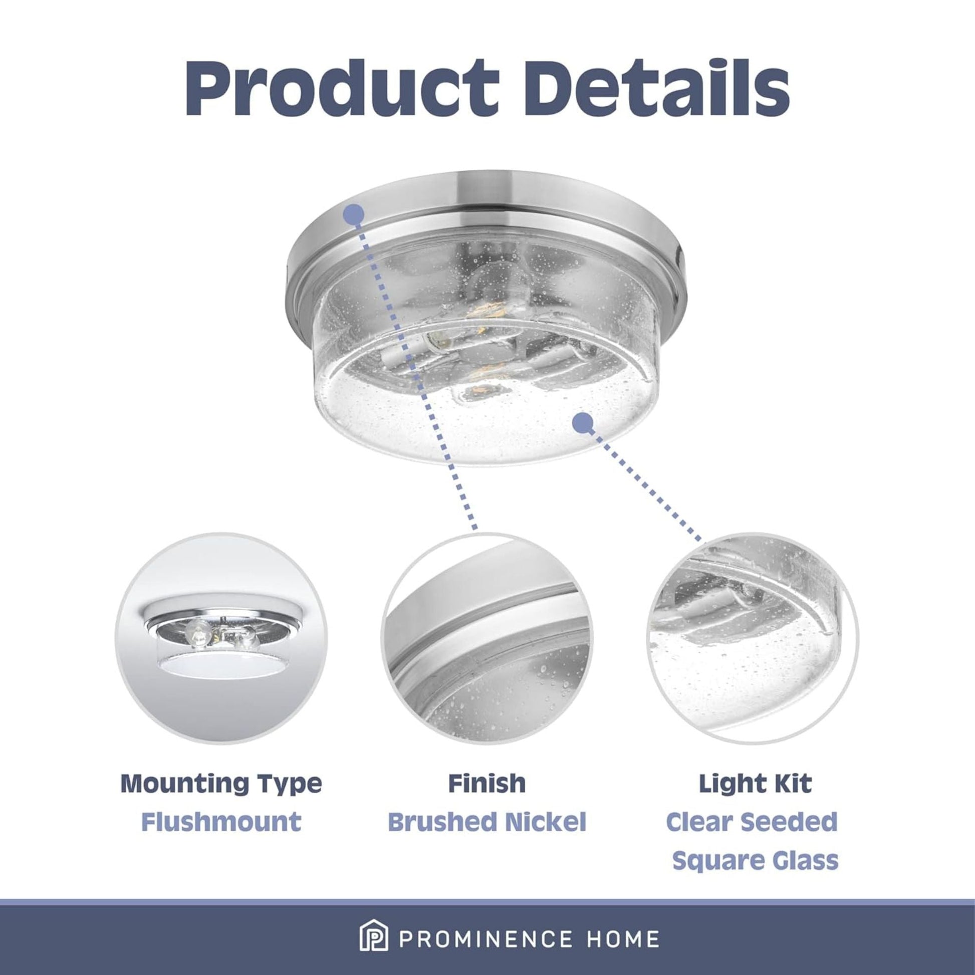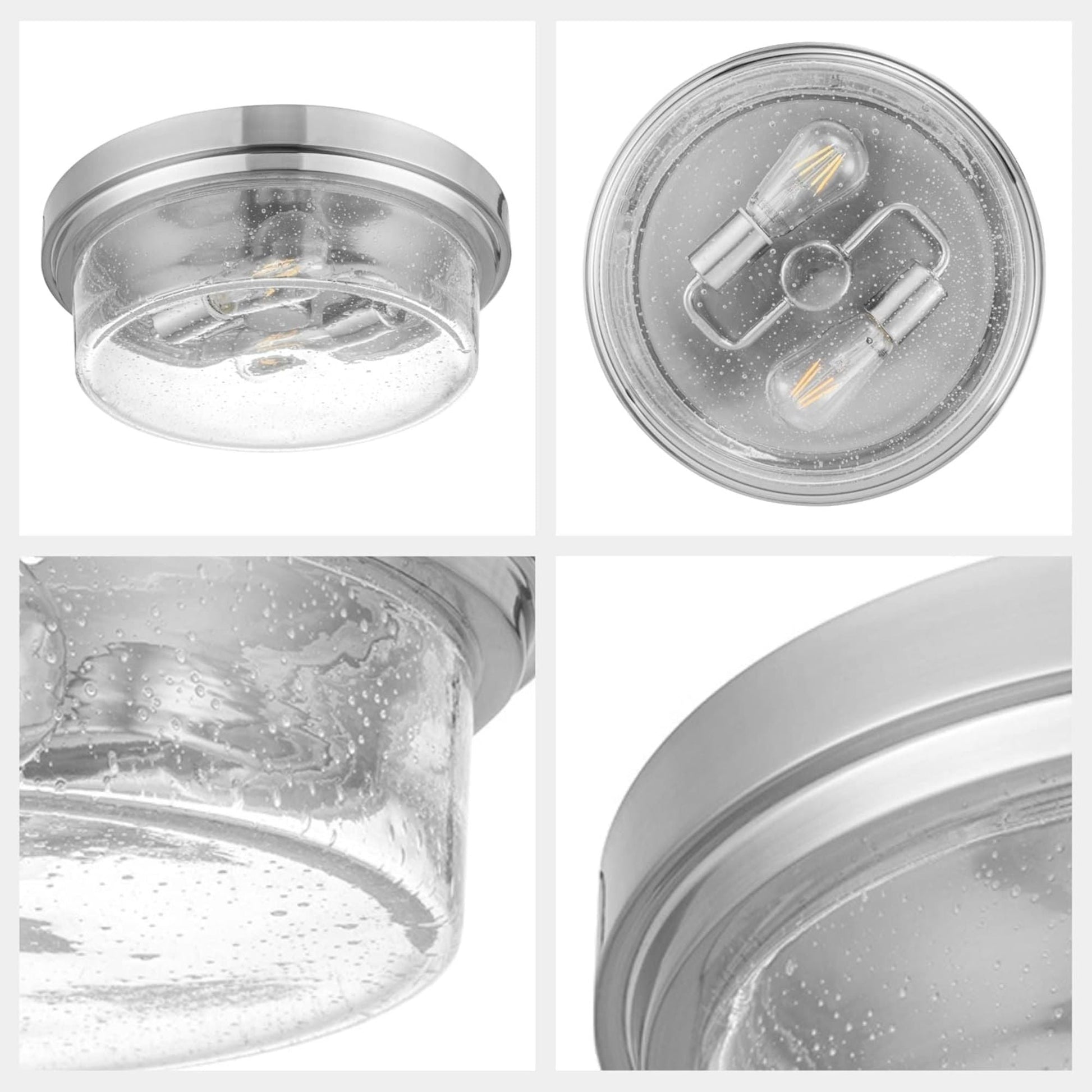 Prominence Home Madalyn 13" Ceiling Light, Seeded Drum Glass, Brushed Nickel