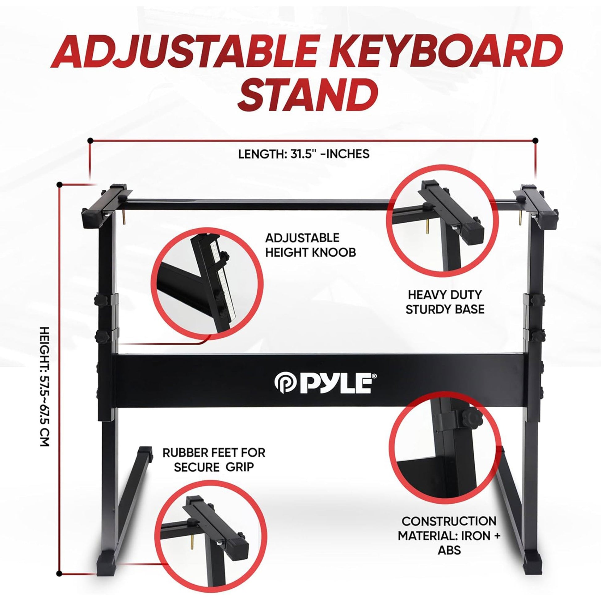 - Keyboard Stand dimensions (L x W x H): 31.5 x 8.3 x 67.5 inches