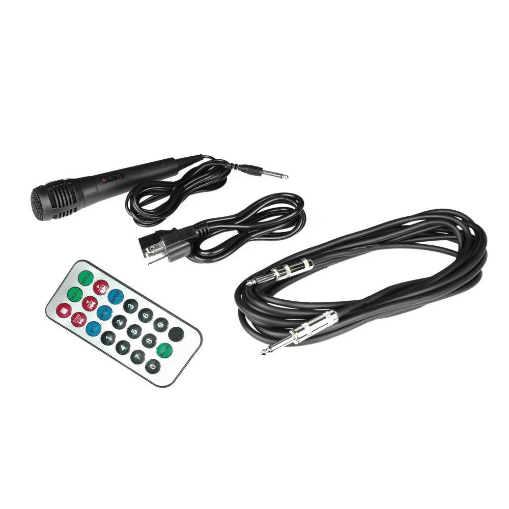 - Equipped with a USB flash drive and SD card reader so it can serve as an MP3 player, 3.5mm AUX input,1/4" SpeakOn Input, and XLR microphone input for karaoke. Has a 35mm stand mount and comes with 2 stands, remote, microphone, power cable